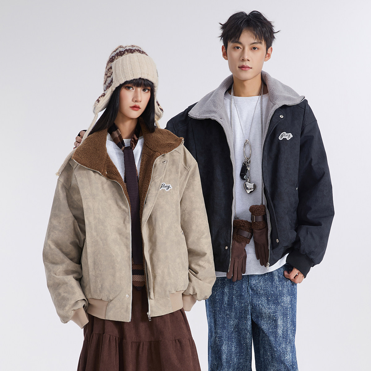 📚 PCMY加绒加厚美式复古翻领棉服2025新款冬季爆款情侣保暖外套男女