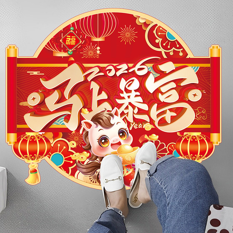📚 2026新年开门亿定红布置地贴马年新春超市店铺商场开门长红装饰贴