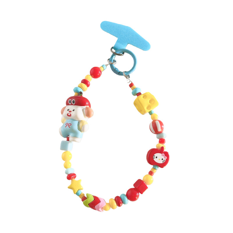 📚 多巴胺核ins卡通可爱彩色串珠手链挂饰适用于手机壳趣味学生可爱女手机链挂绳ccd相机挂件钥匙扣便携手腕H74