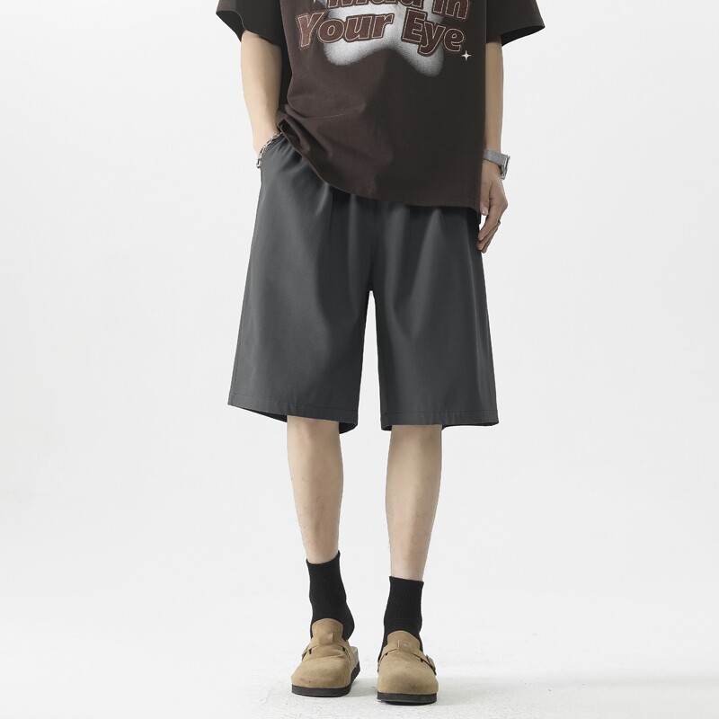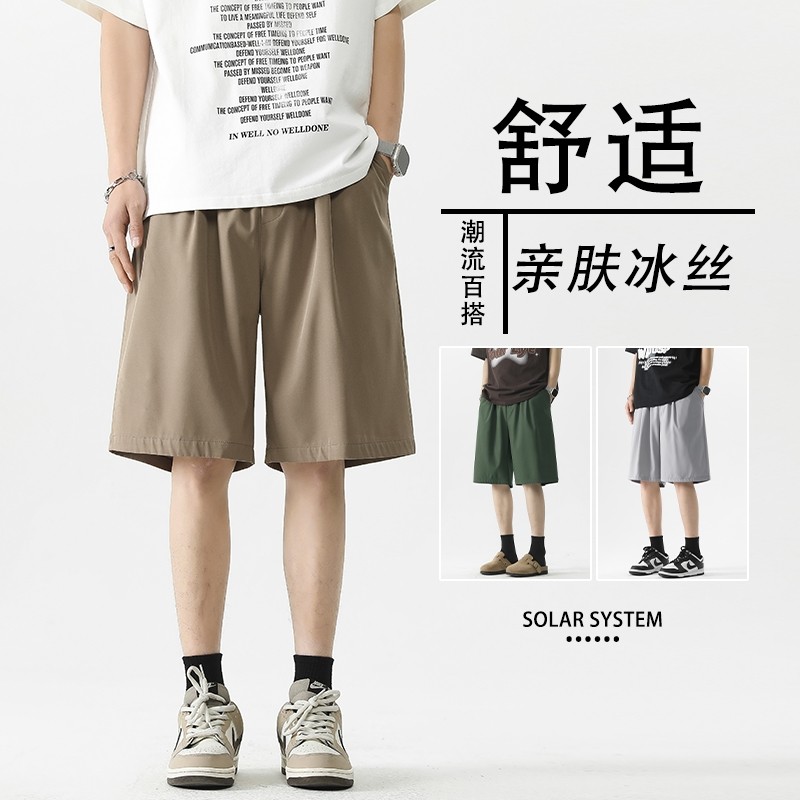 📚 宽松短裤男生夏季薄款运动卡其色休闲潮男士中裤冰丝速干五分裤子