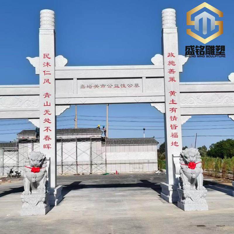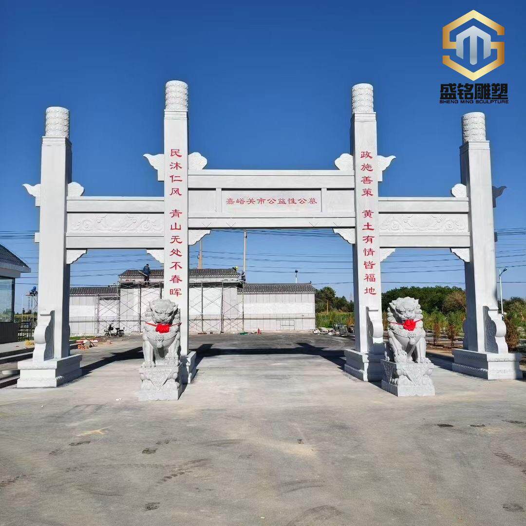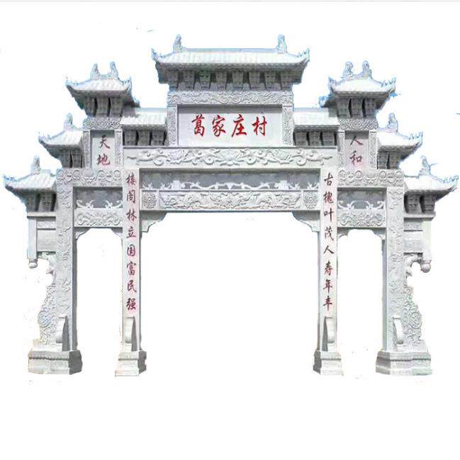 📚 石材牌坊村口牌楼花岗岩雕刻石牌坊中式仿古三门石牌坊山门牌楼