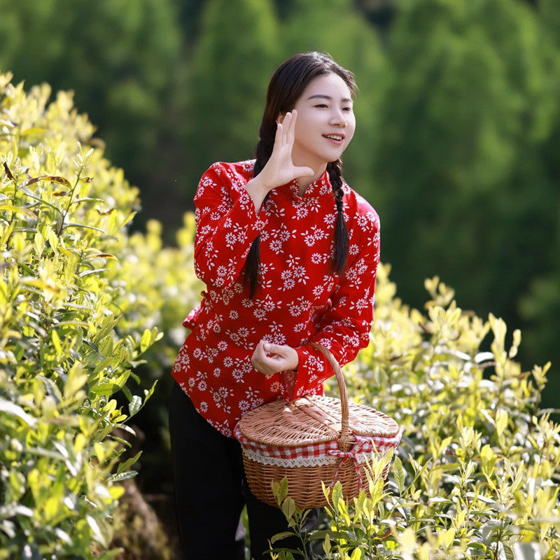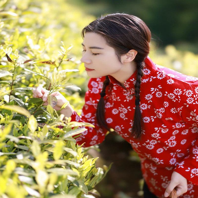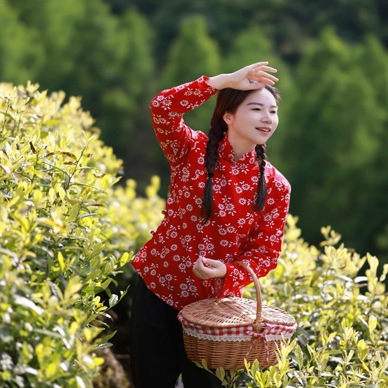 👗 穿上这款采茶服,仿佛我就是那个在农村里采茶的村姑。大襟的设计给人一种复古的感觉,让我仿佛回到了那个年代。这件衣服的颜色也非常经典,怀旧大襟上衣配上碎花设计,真的让人眼前一亮。