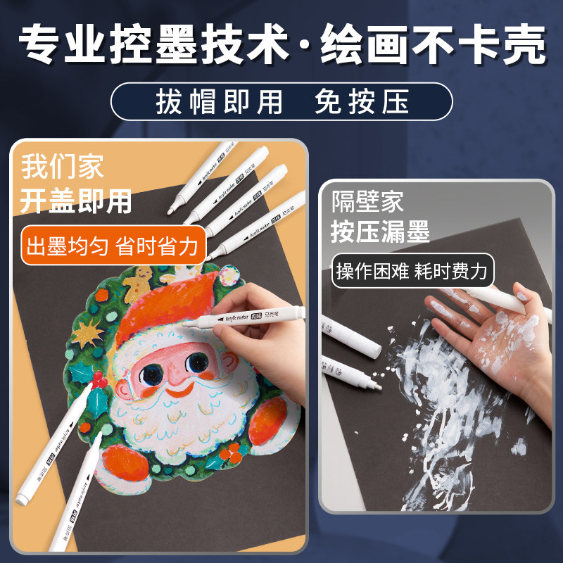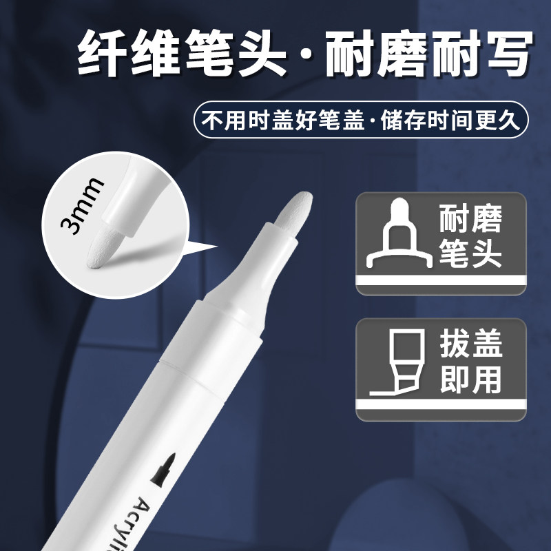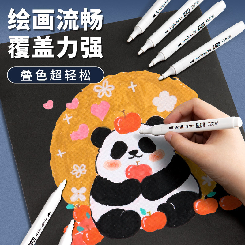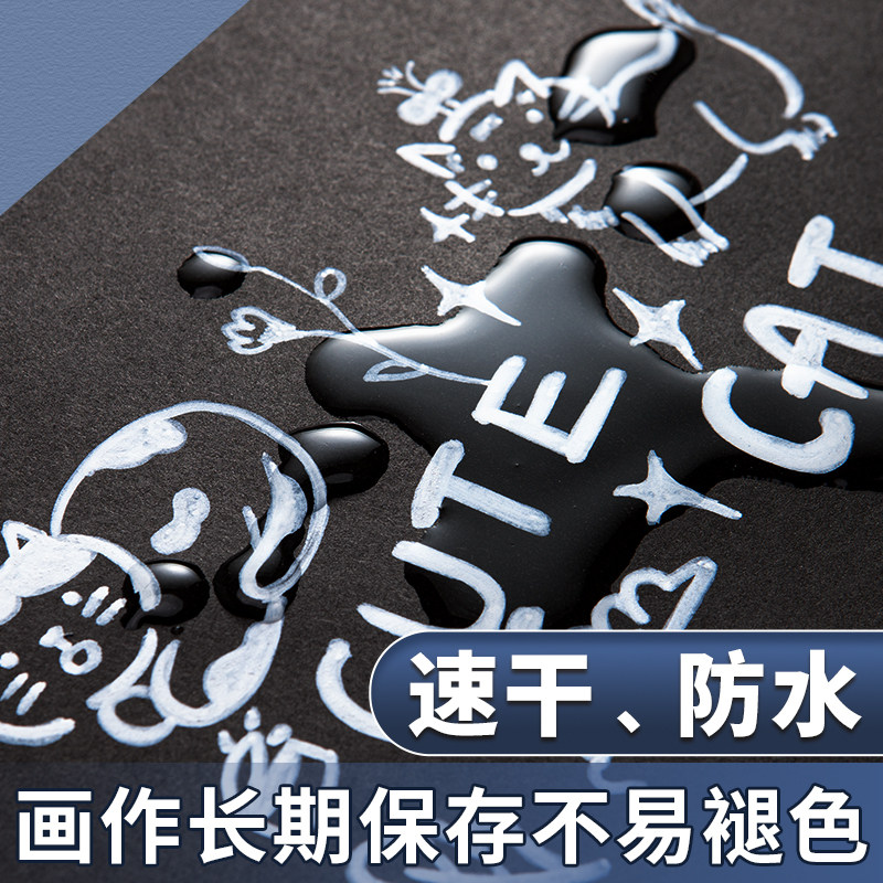 📚 白色高光丙烯马克笔美术专用小学生绘画笔手绘马克漫画高光笔防水防油不掉色速干涂鸦笔咕卡笔黑底白字勾线笔
