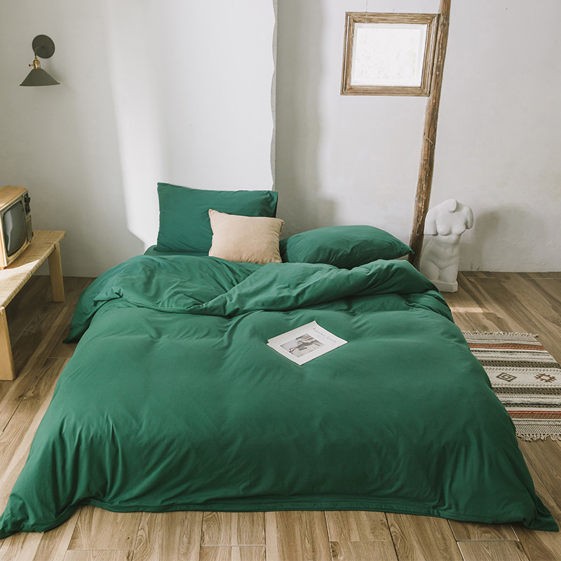 📚 全棉天竺棉四件套纯色针织棉三件套简约超柔纯棉床笠床单床上用品
