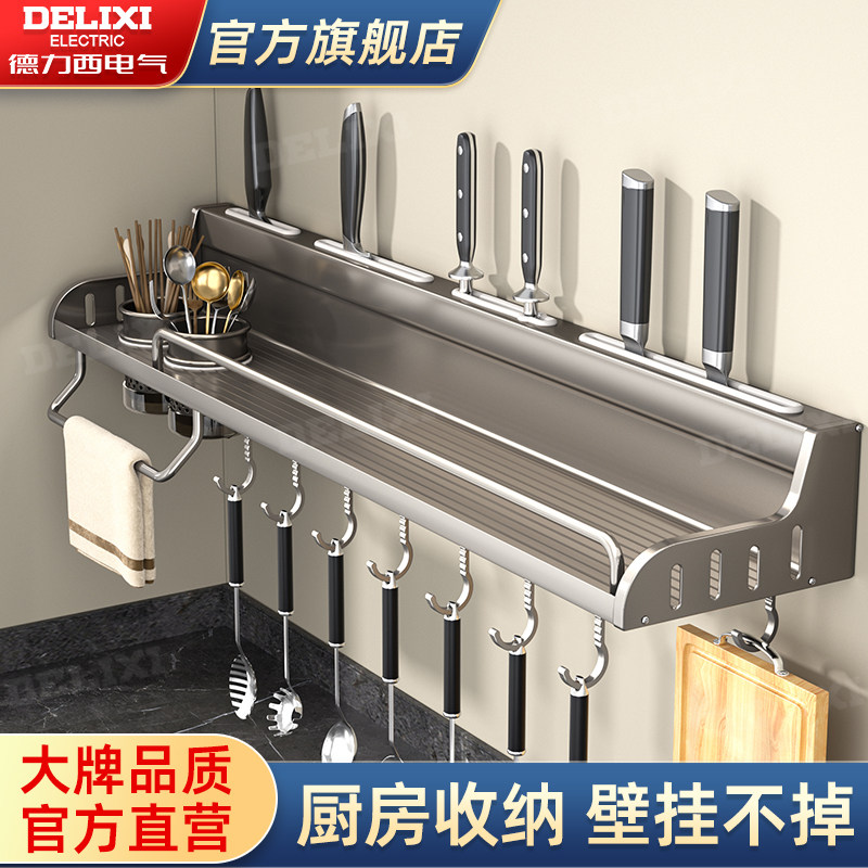 📚 德力西免打孔厨房置物架壁挂式筷子刀架家用调料用品大全收纳挂架