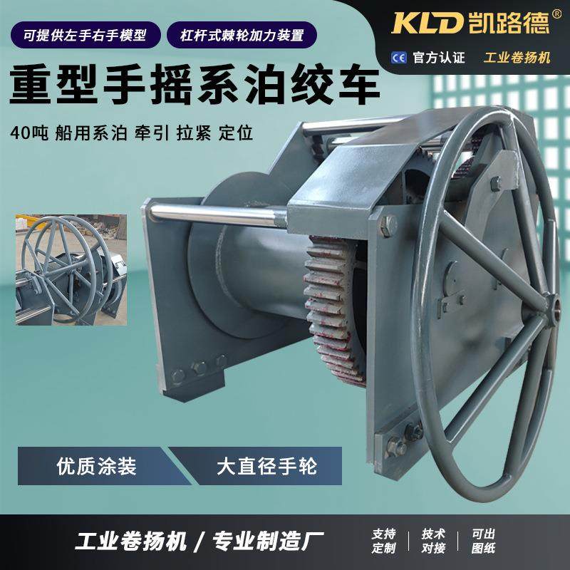 📚 重型手摇卷扬机40吨配杠杆式棘轮加力装置二级传动结构的船用绞车
