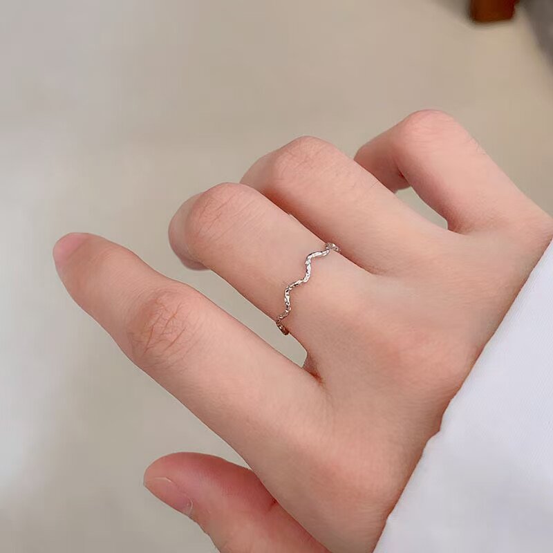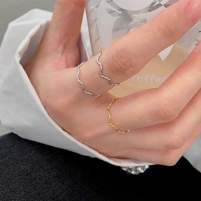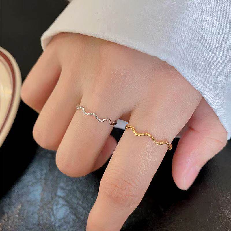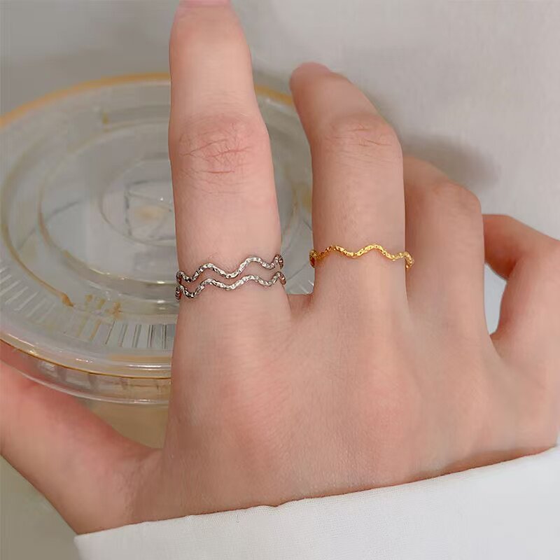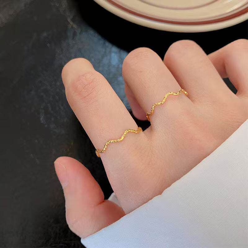 📚 【钛钢不掉色】波浪碎金子花纹雕刻曲线波纹素圈闺蜜戒指