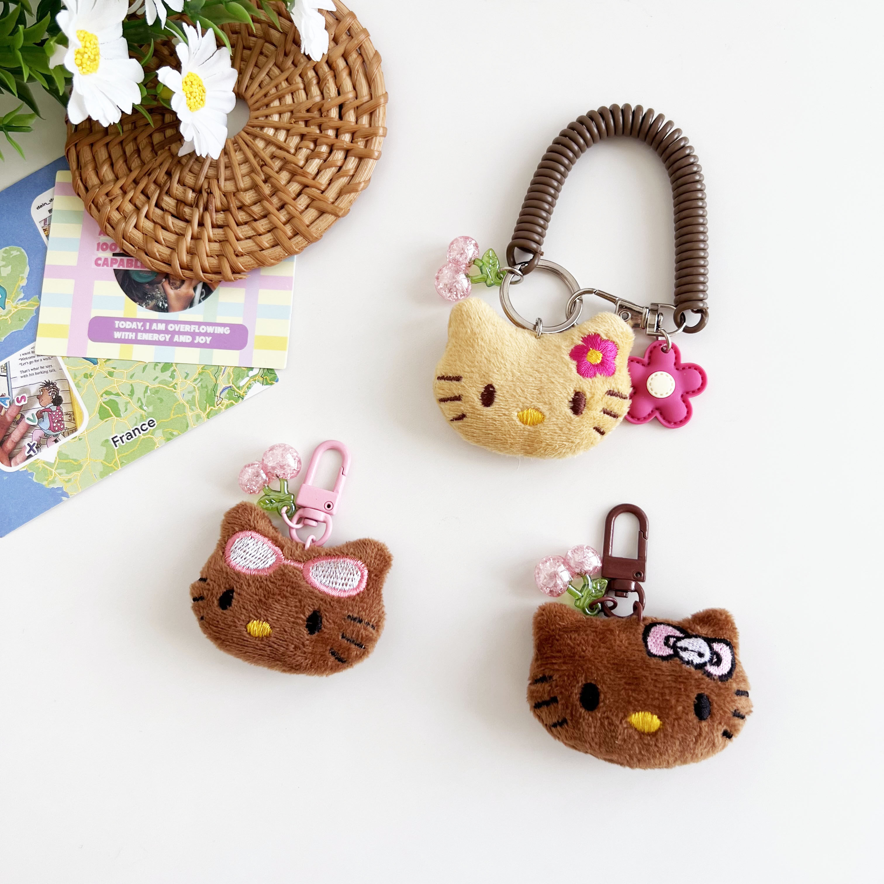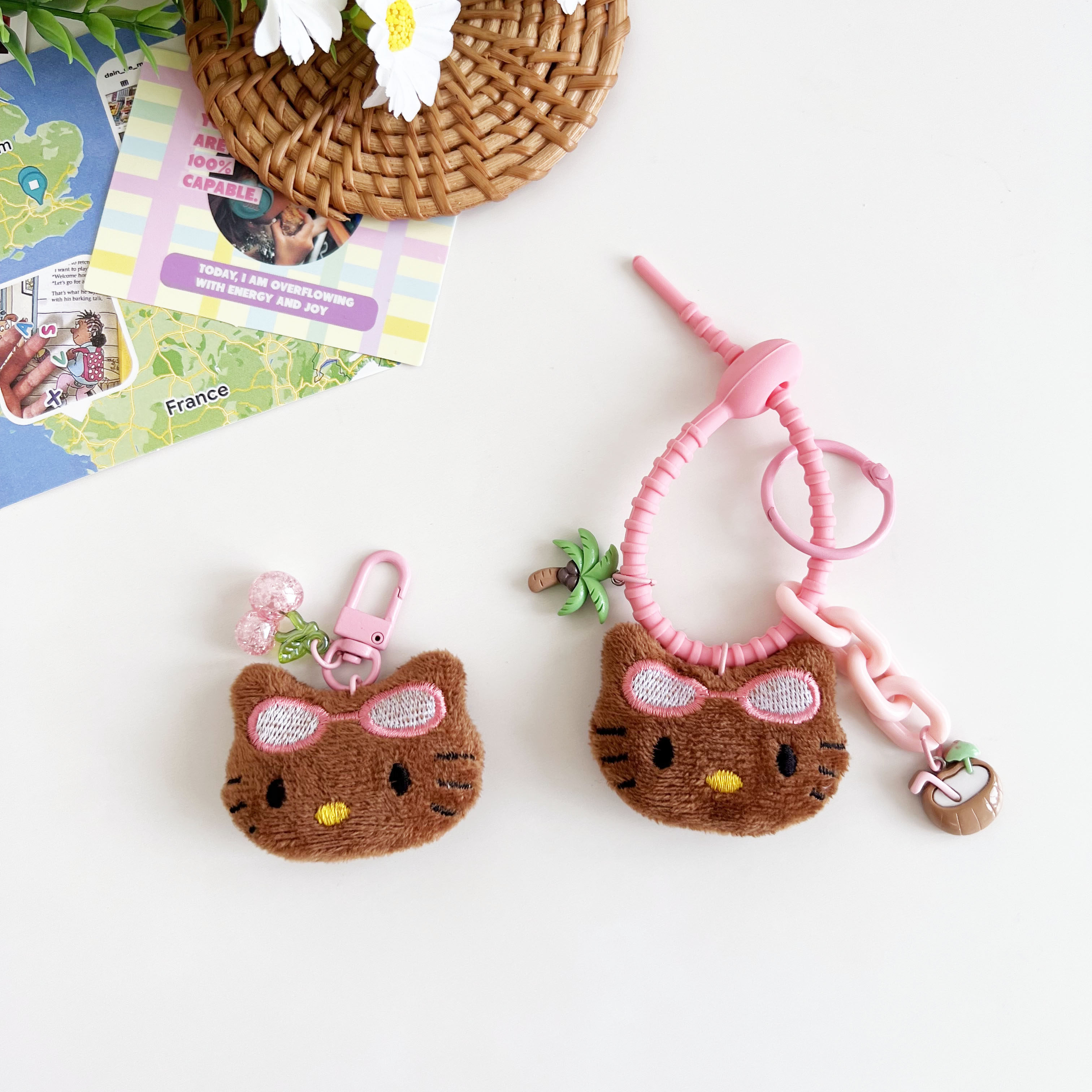 💓夏日夏威夷,可爱少女心爆棚!🎉超值券后价5.8入手的夏威夷黑皮Kitty包挂件毛绒公仔樱桃KT汽车钥匙扣礼物
