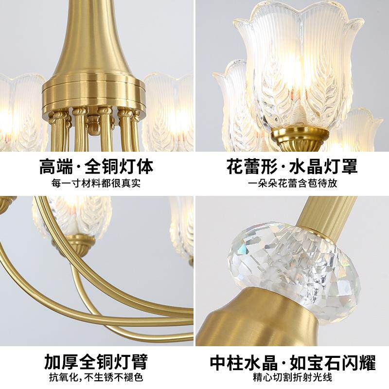📚 美式水厅晶吊灯客梯灯全铜轻奢复古欧8824式主卧室餐厅灯卧楼中山