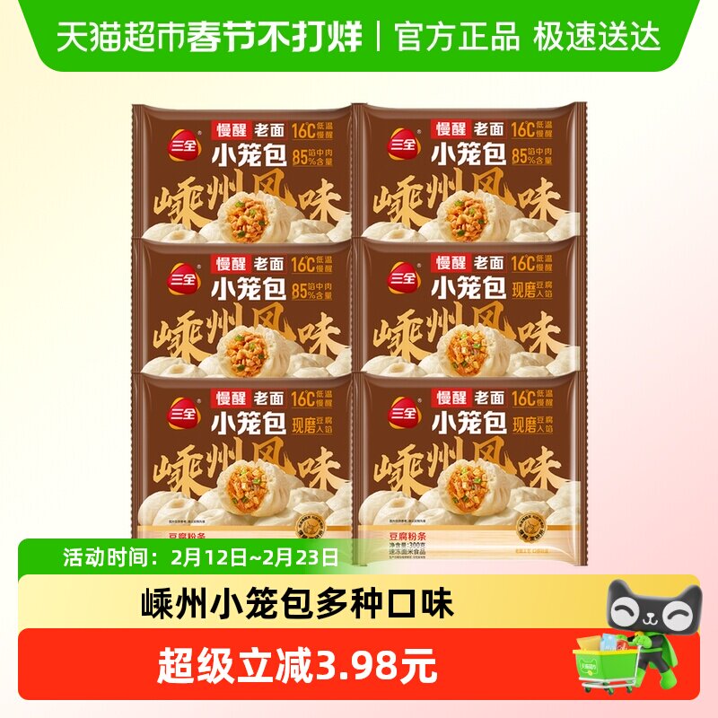 📚 三全小笼包老面慢醒鲜美猪肉豆腐粉条嵊州风味小笼包多口味任选