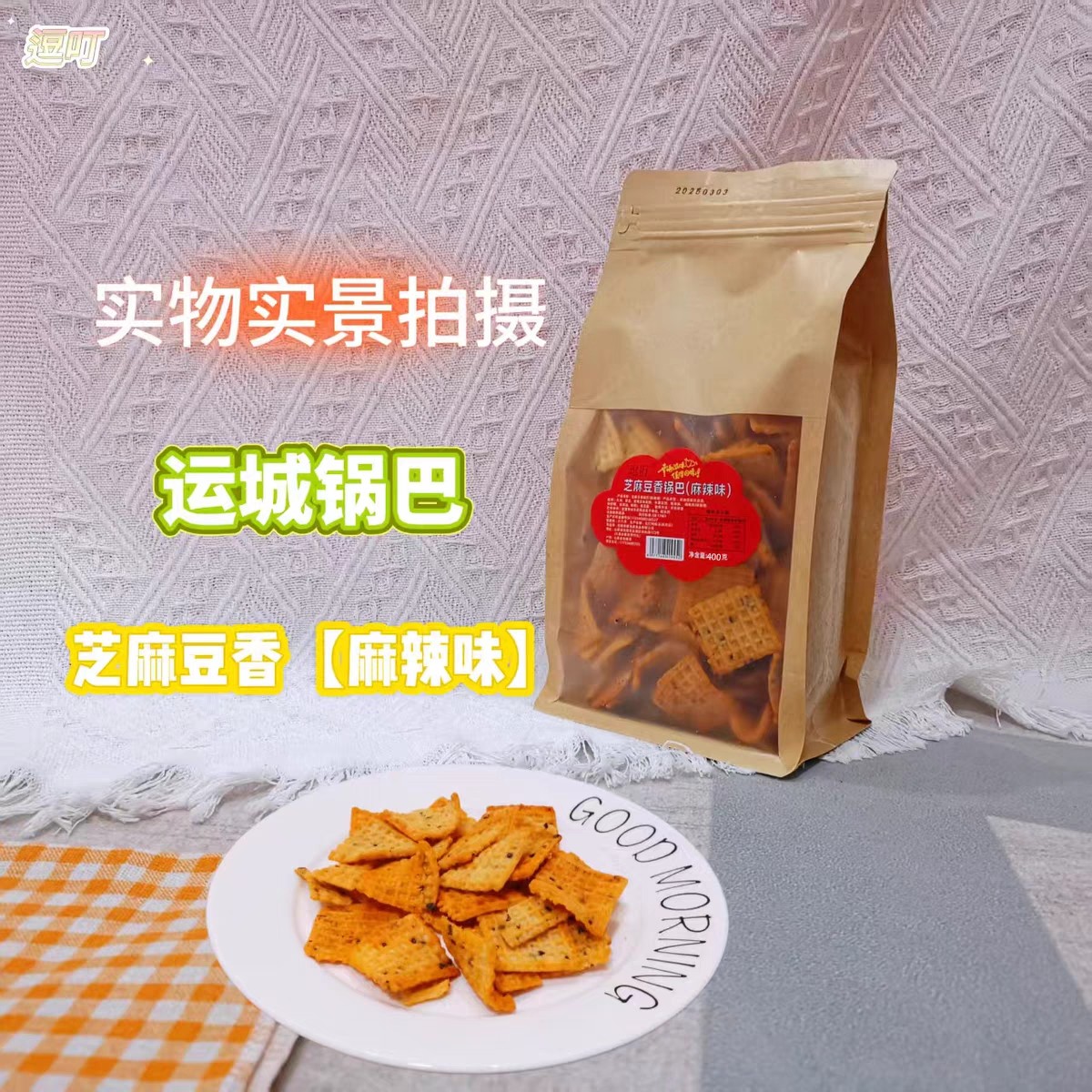 📚 山西运城特产新运源运乐逗叮芝麻豆香锅巴牛排麻辣味锅巴400g零食