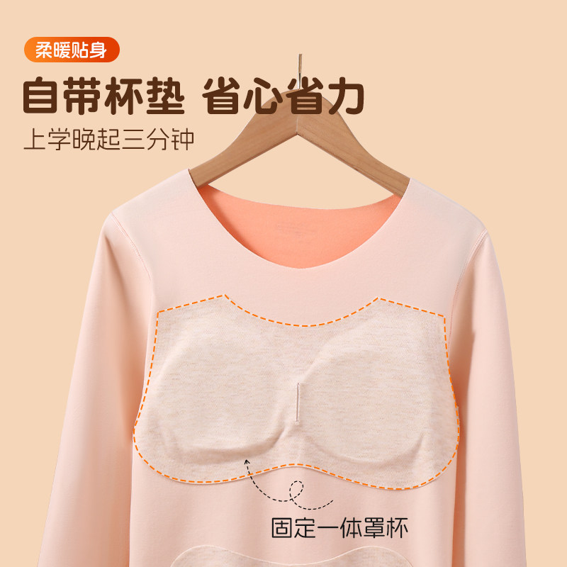 📚 古今女童带胸垫保暖内衣羊毛打底衫加绒秋衣秋裤套装2025新款内搭