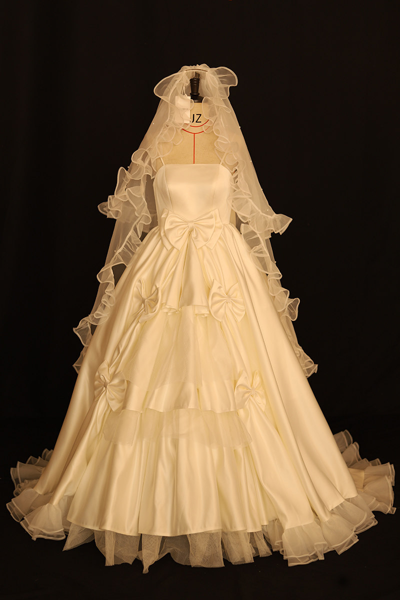 📚 新款洛丽塔蛋糕多层公主蓬蓬裙婚纱简约中腰缎面小拖尾穿衣服定制