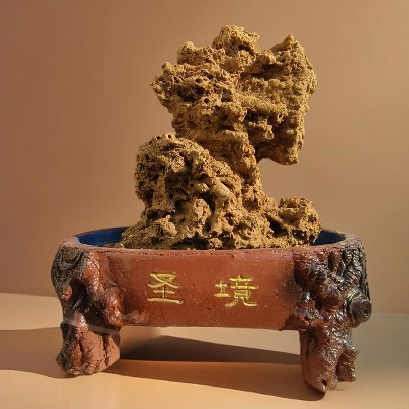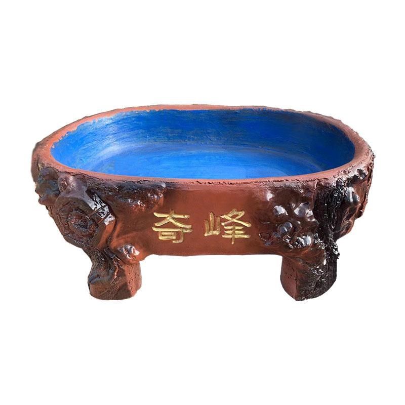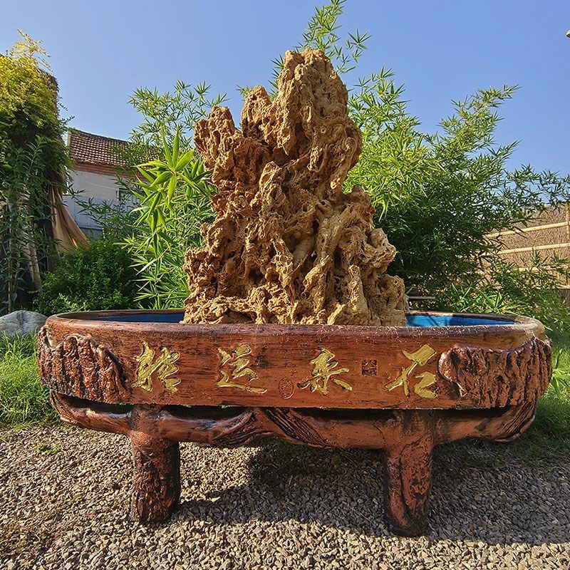 📚 古法鱼缸造景盆仿木桩水泥盆景盆上水石吸水石托盘中小型假山底托
