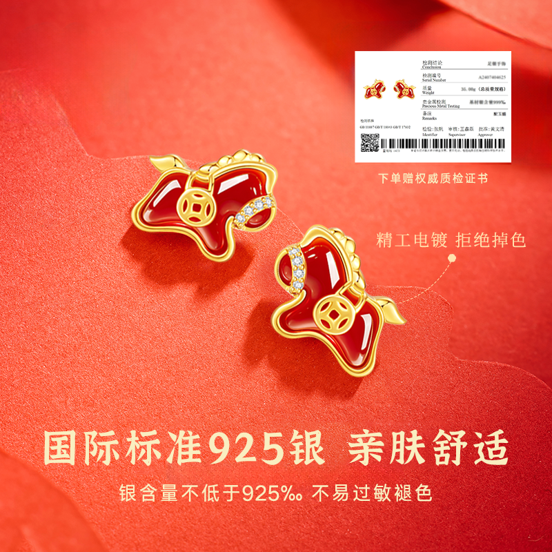 #中国黄金 #本命年 #红色耳钉 #马年吉祥 #S925材质 #券后价147