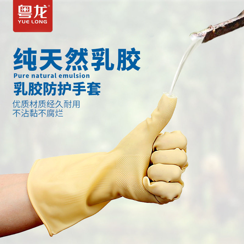📚 粤龙羊城加厚洗衣耐磨乳胶工业微耐酸碱批发家务卫生厨房橡胶手套