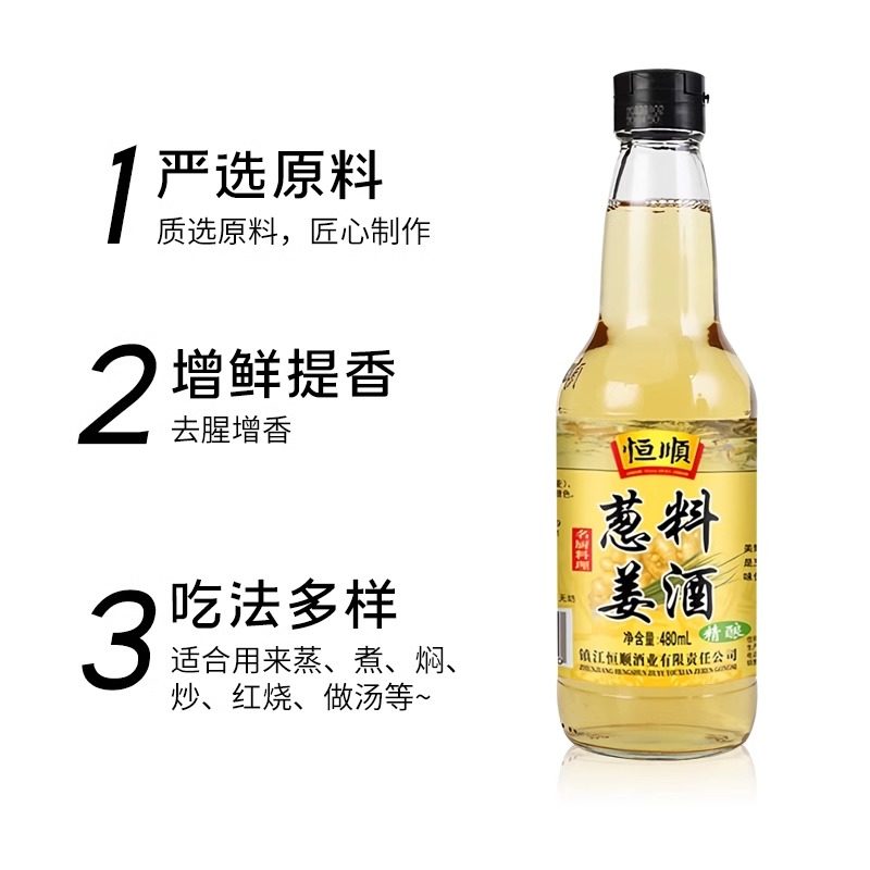 📚 恒顺姜葱料酒480ml名厨料酒炒菜去腥解膻腌制香味浓郁厨房调味料