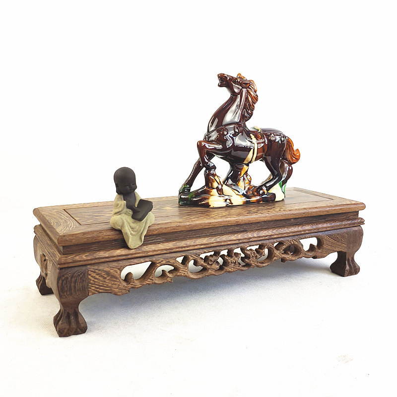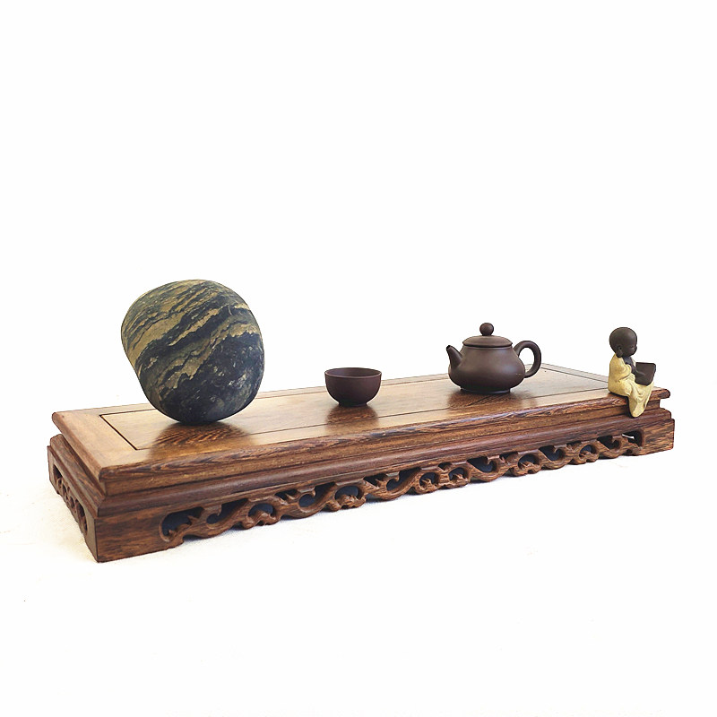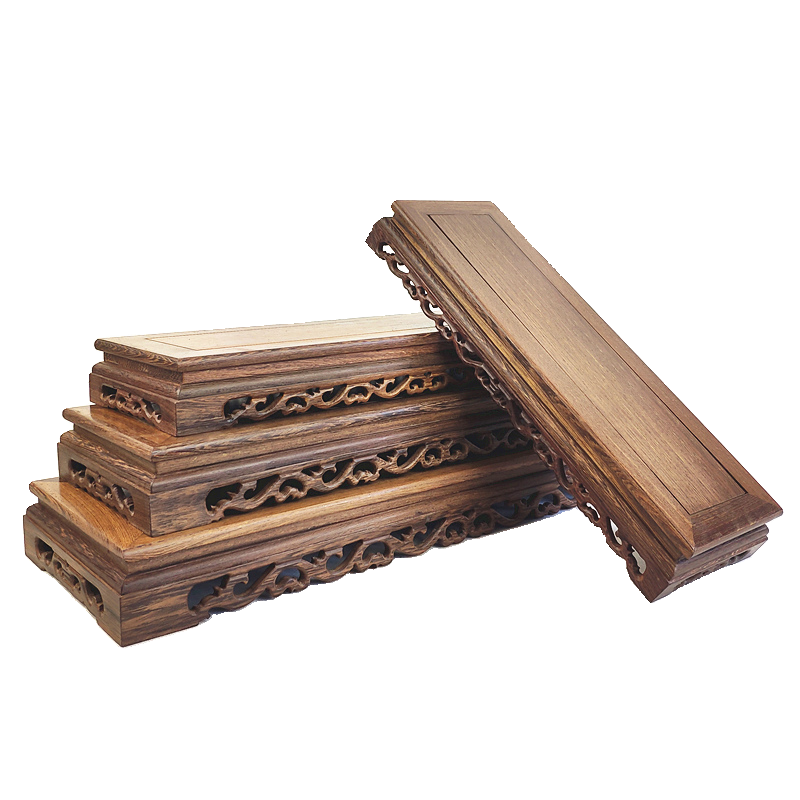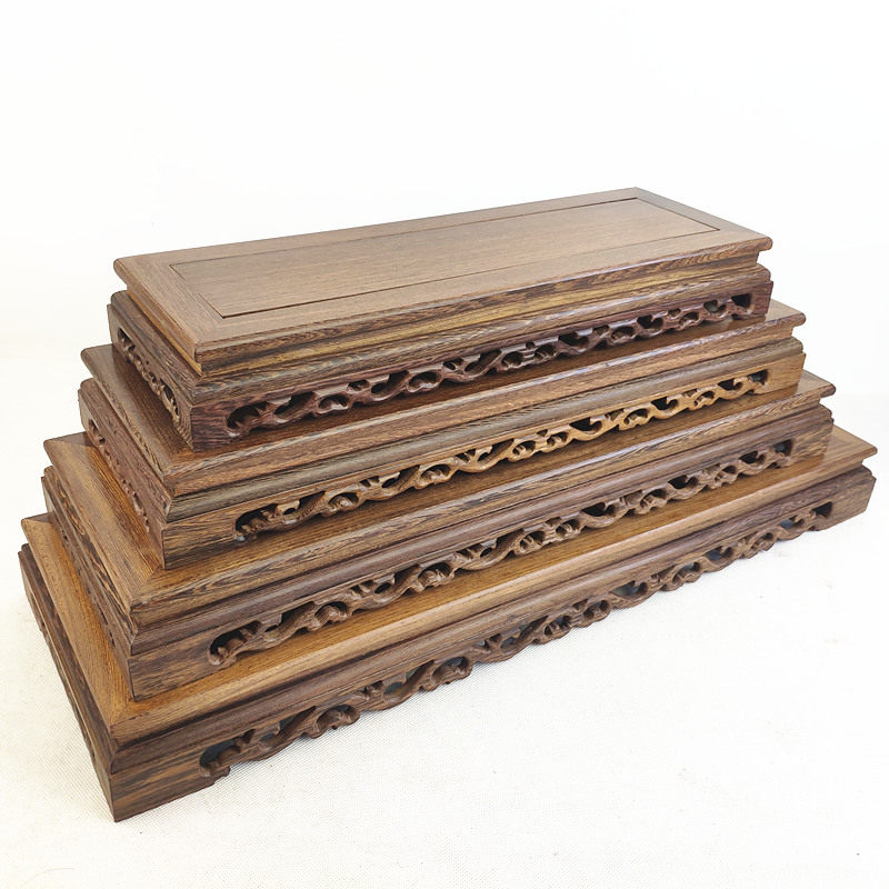 📚 红木雕刻东阳实木底座新中式鸡翅木雕花长方形花瓶奇石头佛像摆件