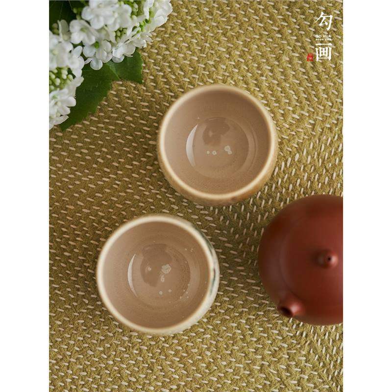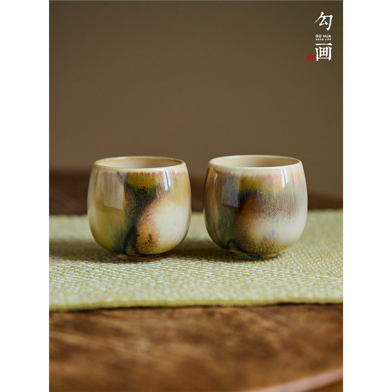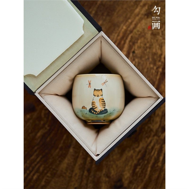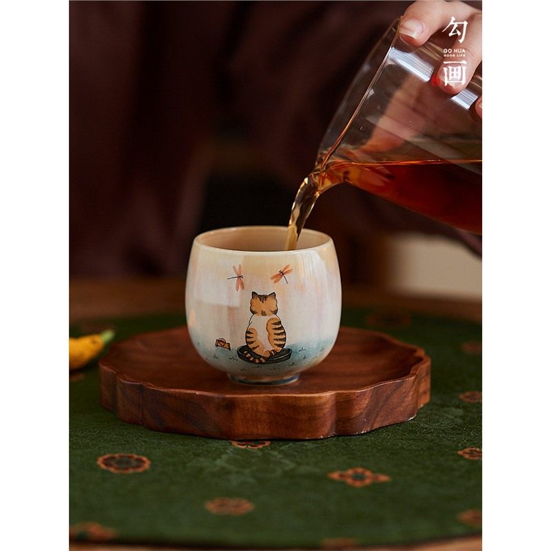 📚 【勾画茶器】窑变复古茶杯主人杯手绘橘猫背影女生茶具可爱品茗杯