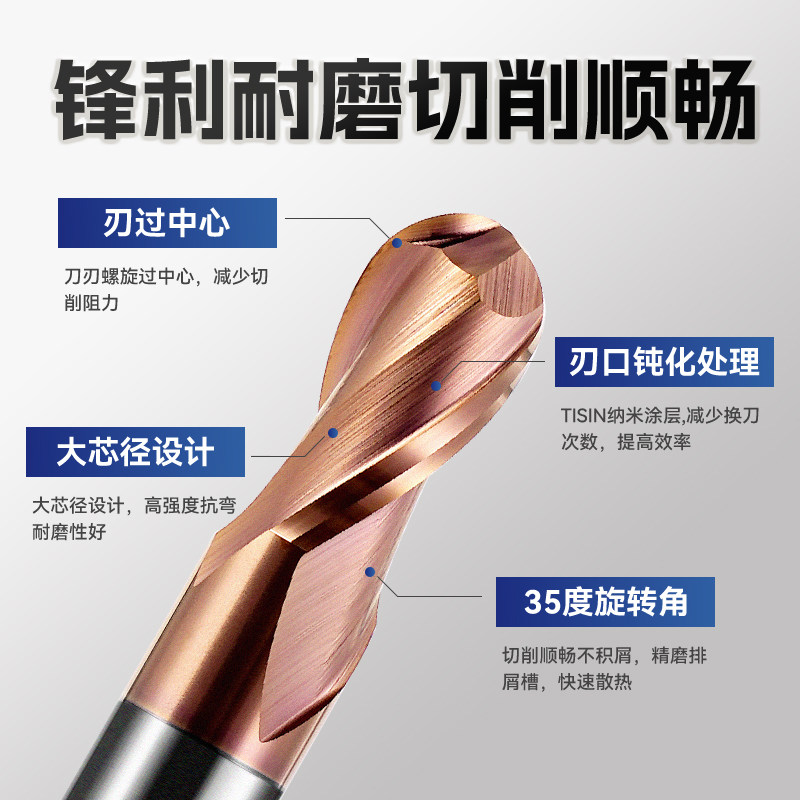 📚 60度球形钨钢球刀雕刻立铣刀球头铣刀不锈钢专用数控合金图层R1刀