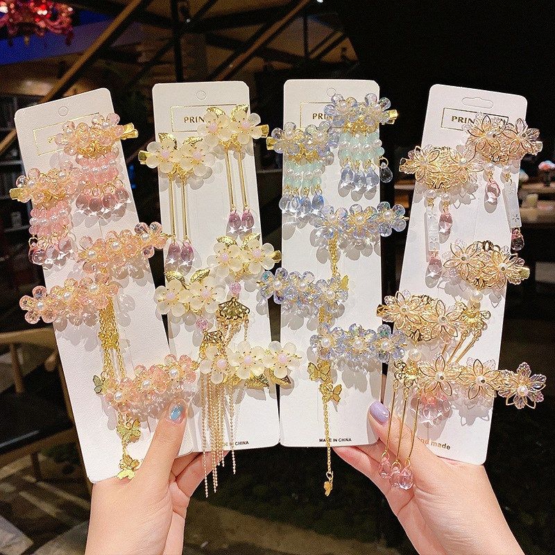 📚 Chinese Style Flower Hairpin Set Girl Hairpin Retro Hanfu Bu