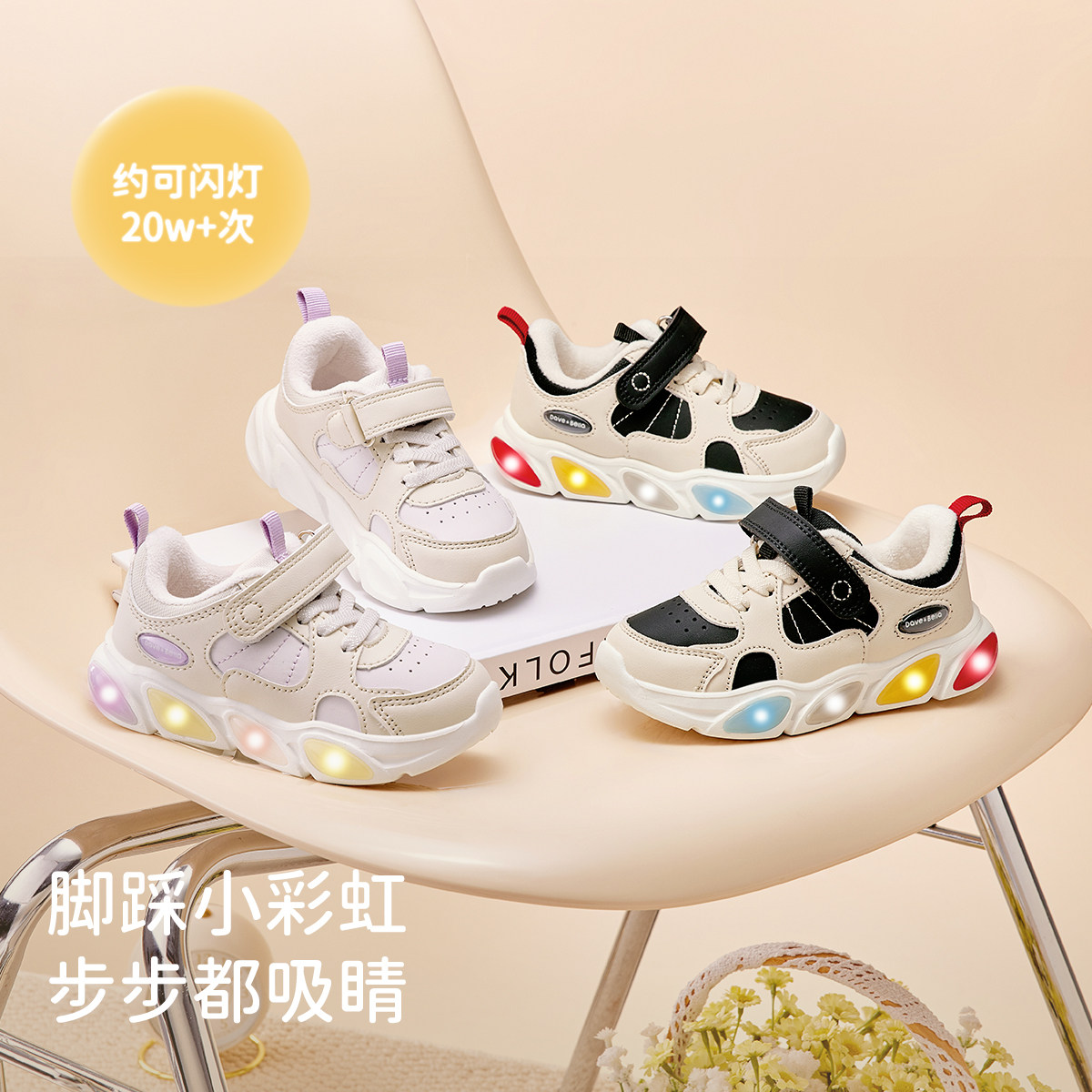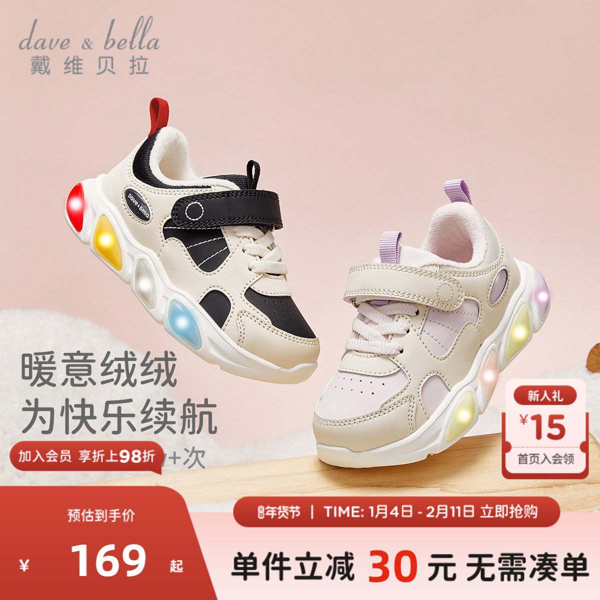 📚 戴维贝拉童鞋男童发光运动鞋冬季新款女童防滑灯鞋儿童加绒鞋子
