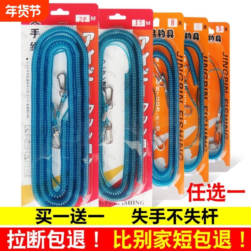 📚 鱼竿失手绳弹力钢丝伸缩护竿放杆绳溜鱼绳钓鱼用品垂钓渔具配件