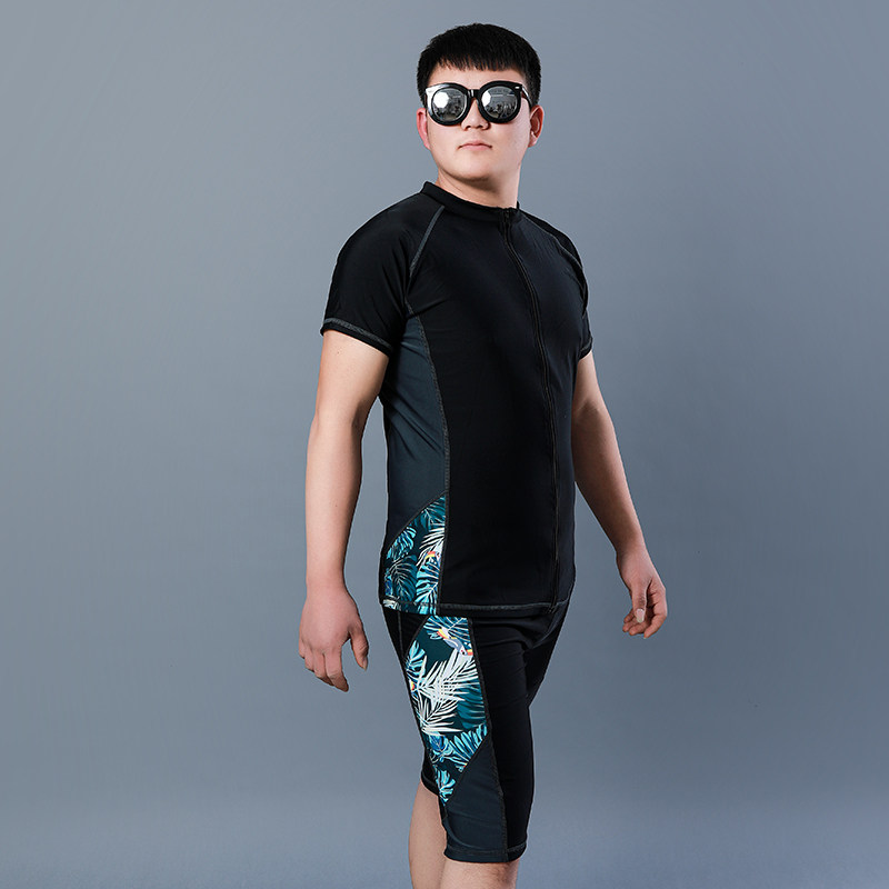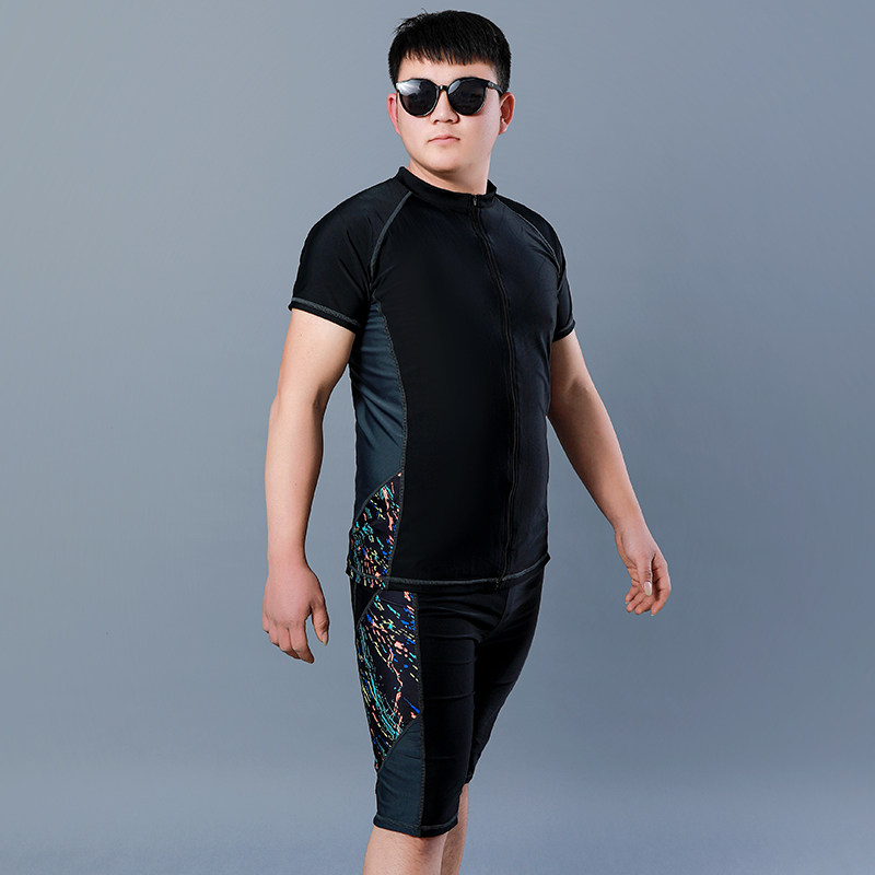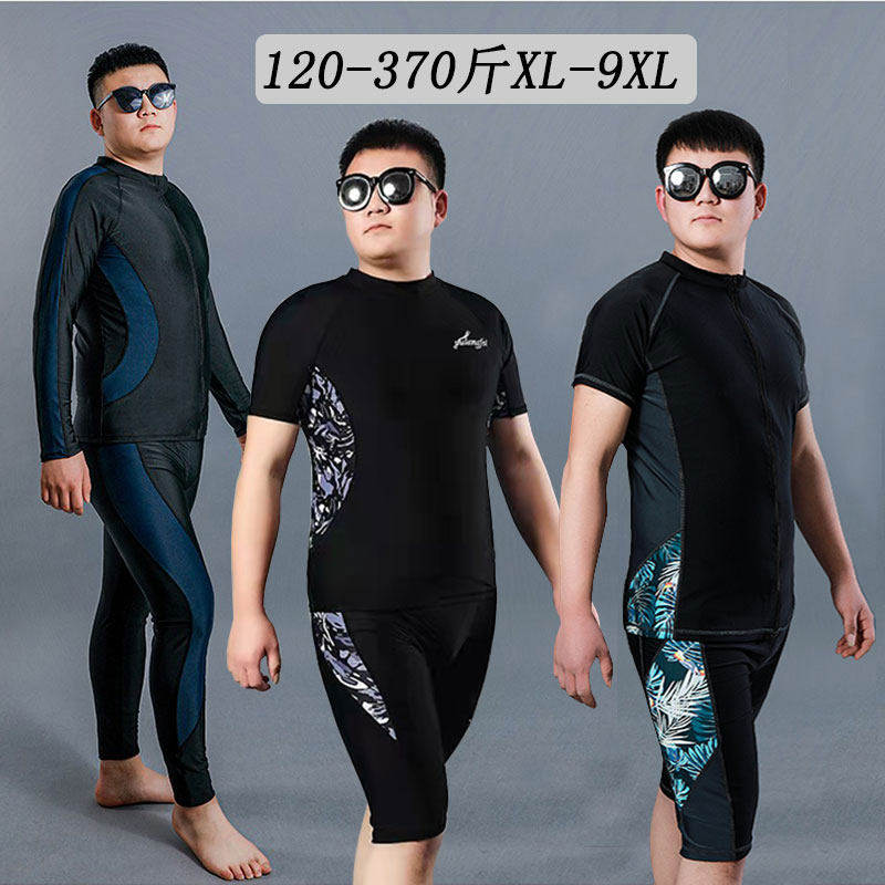 📚 胖子大码泳衣男款防尴尬套装短袖分体加肥加大宽松长袖速干潜水服
