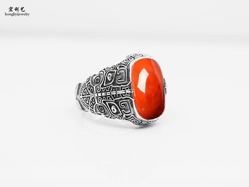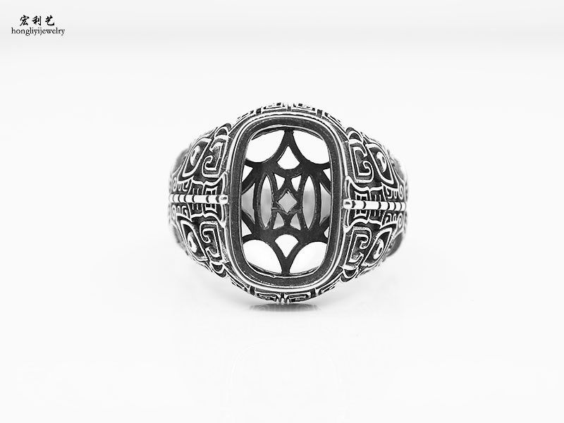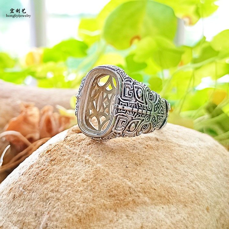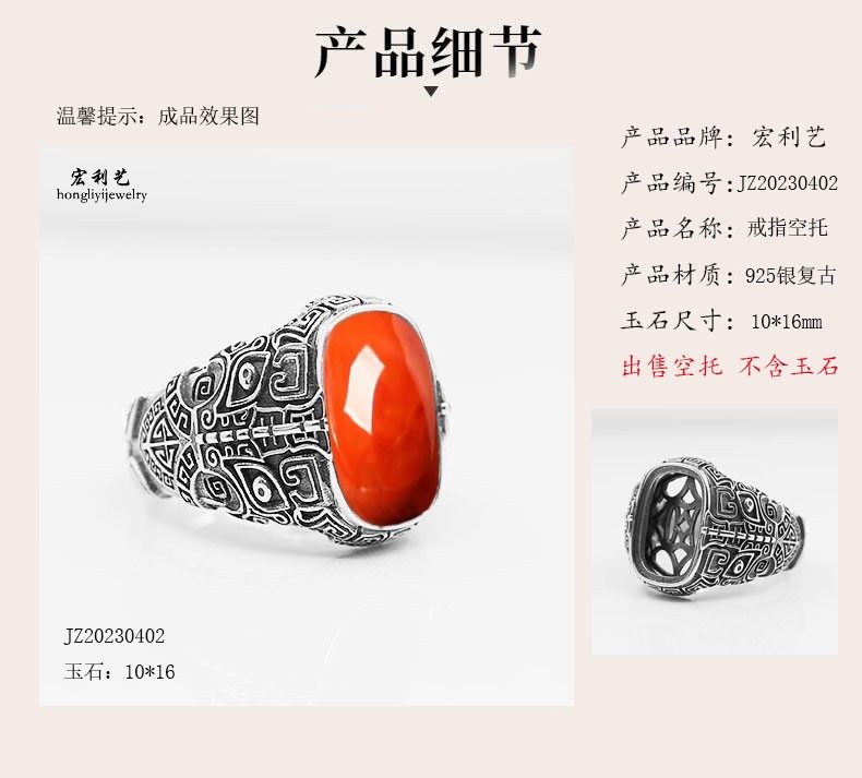 📚 宏利925纯银戒指空托镶嵌松石闭口银托复古蜜蜡南红新款戒托10*16