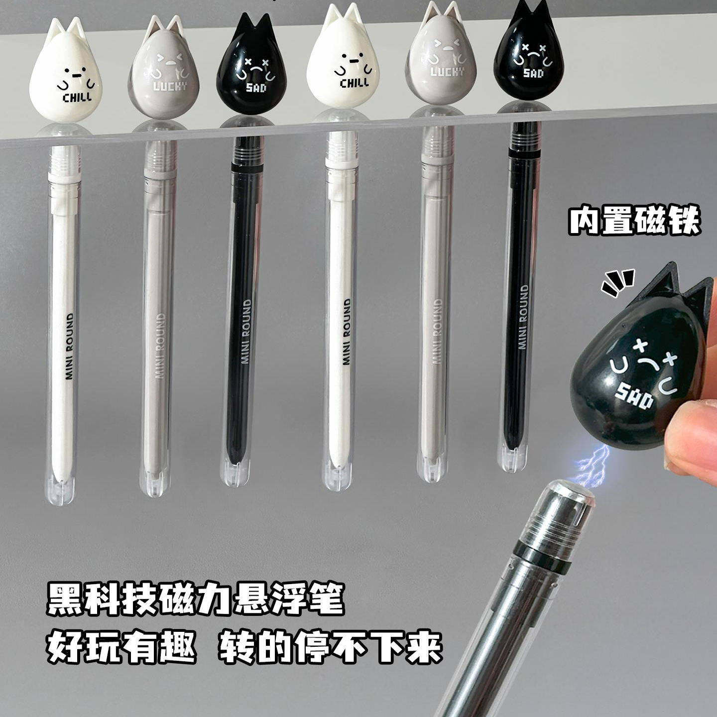 📚 黑科技磁力悬浮磁吸笔网红创意减压治愈0.5全针管黑色卡通中性笔
