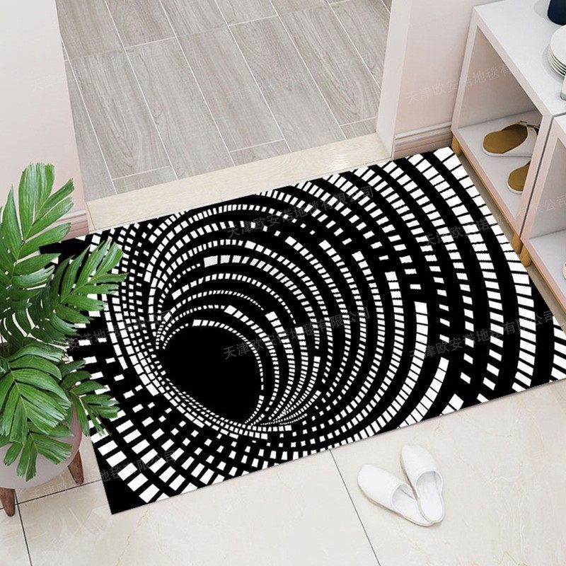 📚 3D眩晕地毯图案卧室客厅茶几地毯黑白陷井地垫直供可