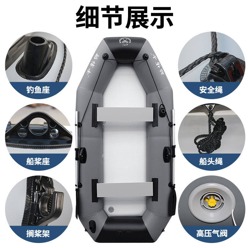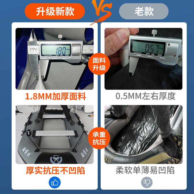 📚 橡皮艇加厚钓鱼船硬底冲锋舟皮划艇气垫船充气船下网路亚漂流船