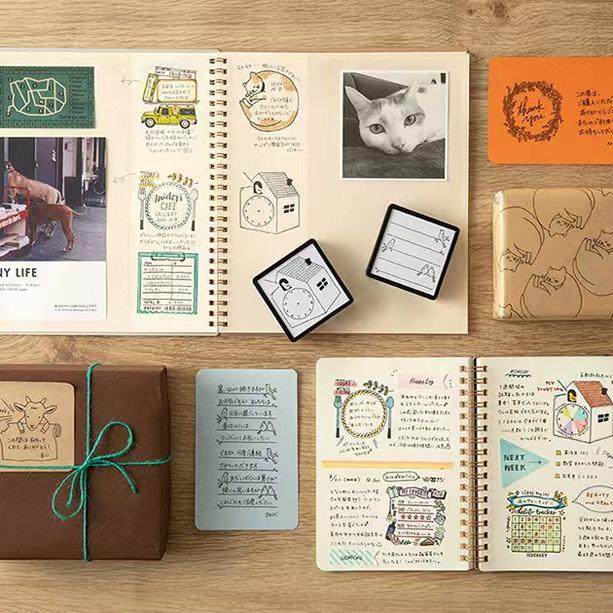 📚 包邮现货Midori新品手帐回转印章浸透印列表记录滚轮天气猫咪