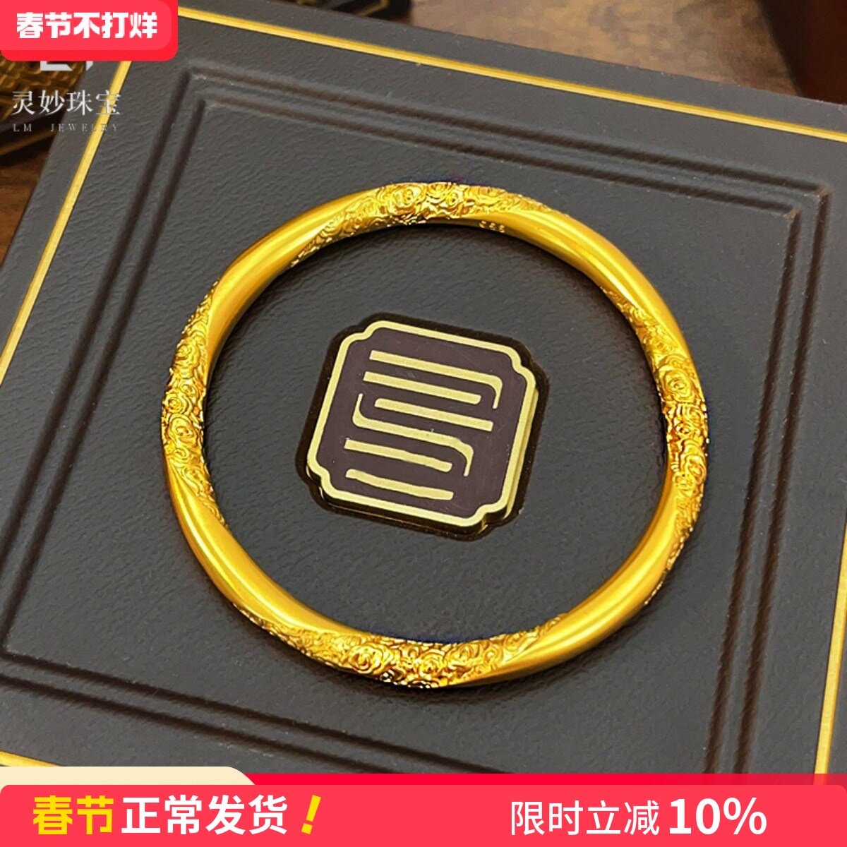 📚 金店同款沙金999古法祥云纹纳福传承手镯女斜卷草纹手环新中式礼