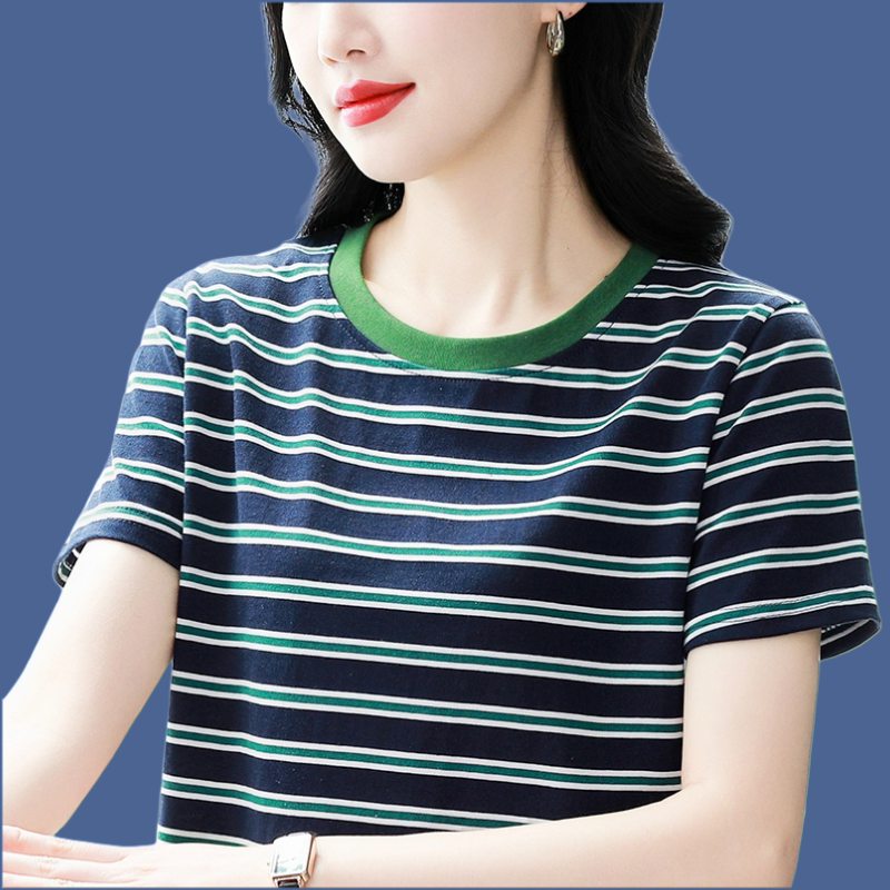 📚 2026新款纯棉短袖t恤女夏天条纹中年妈妈大码胖mm上衣夏季薄款T恤