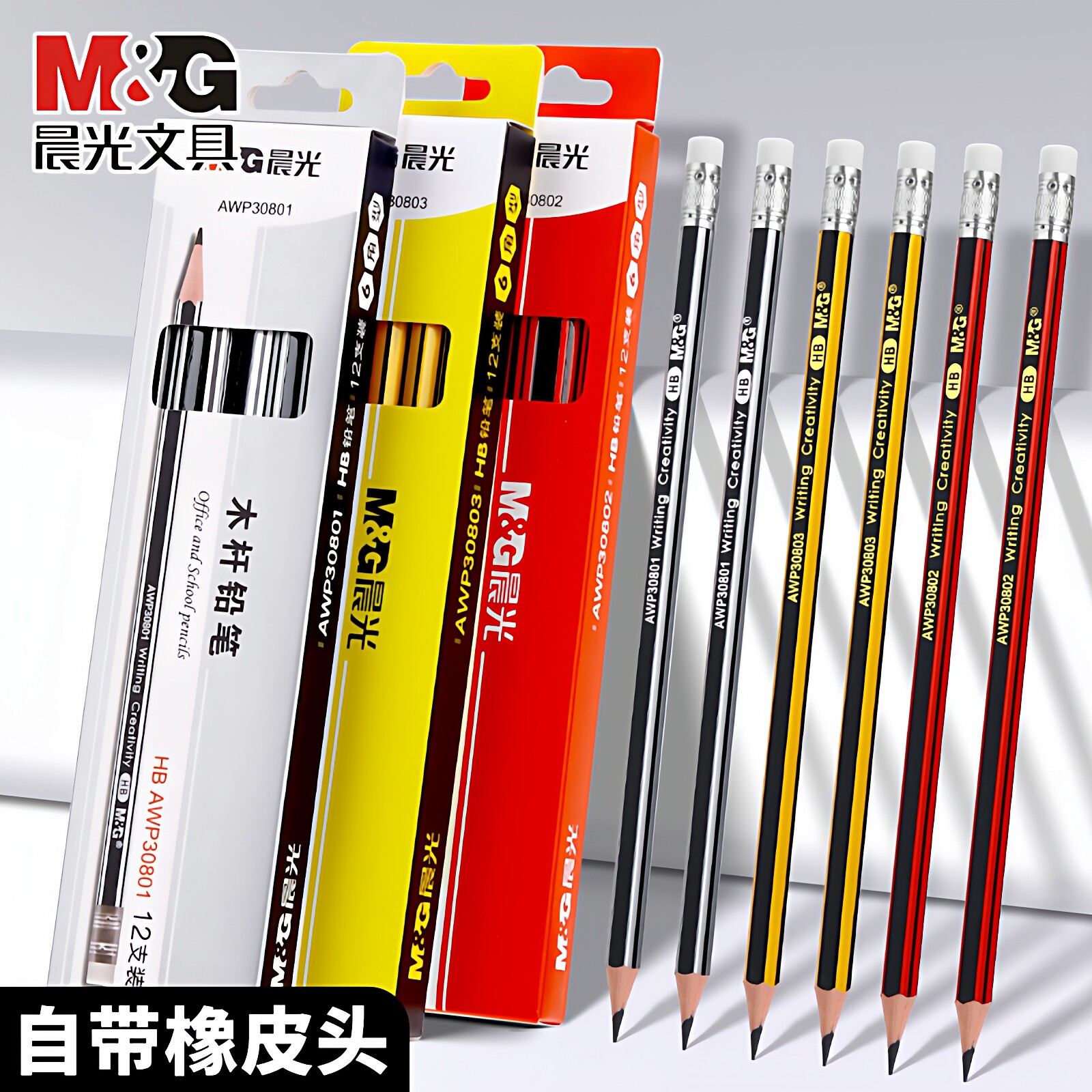 📚 晨光HB铅笔三角木杆铅笔儿童无毒铅笔幼儿园小学生彩色铅笔耐用不断芯铅笔个性铅笔黑黄铅笔银色铅笔自带橡皮