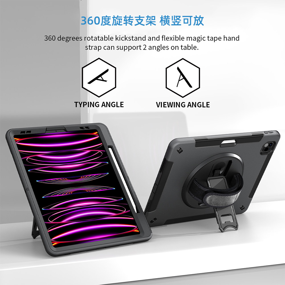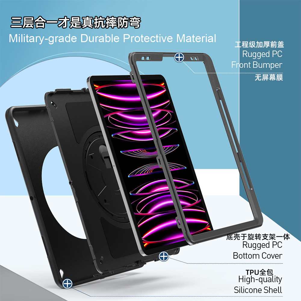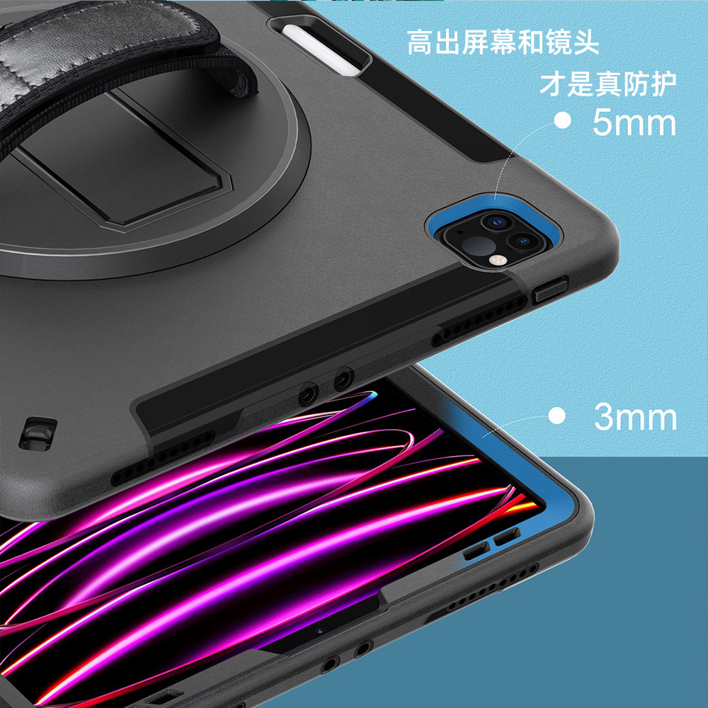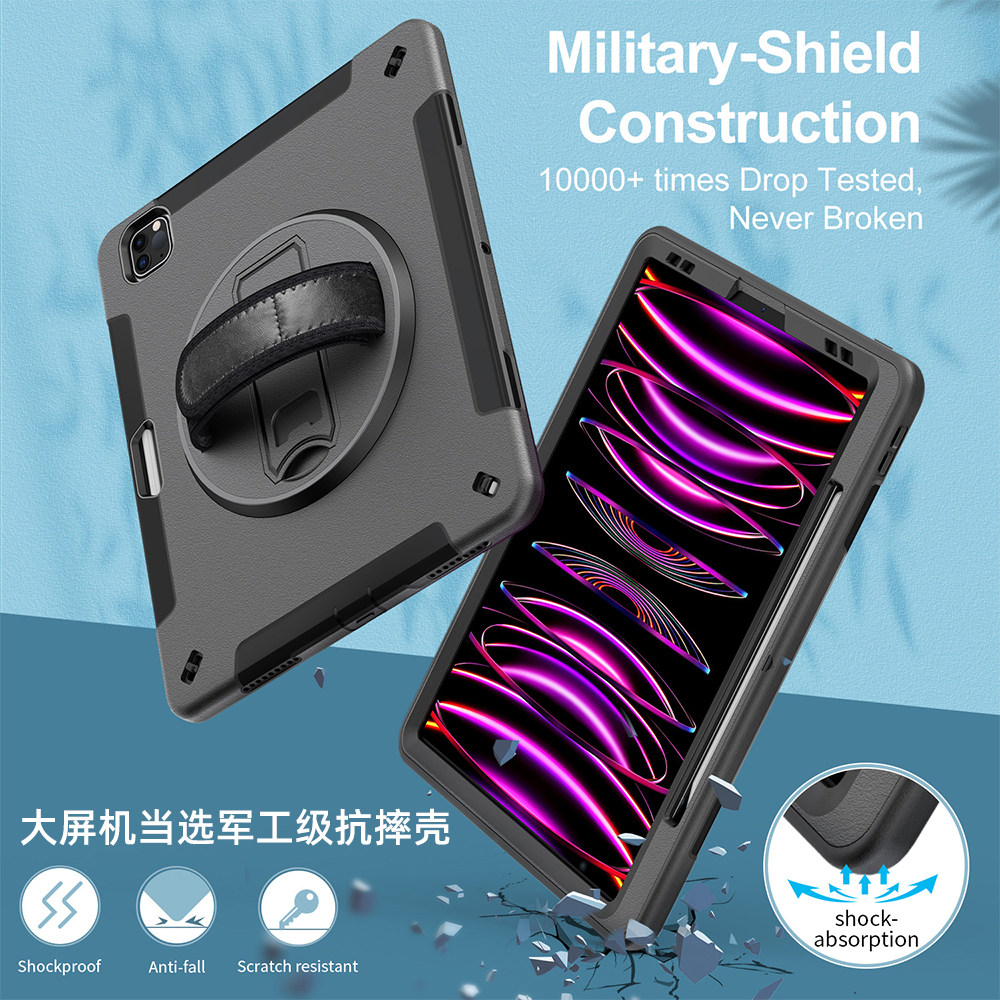 📚 适用ipadpro12.9寸22款保护套带笔槽苹果平板第一代二代3/4/5/6代12英寸A2437 A1671 A1652防弯防摔小众黑色