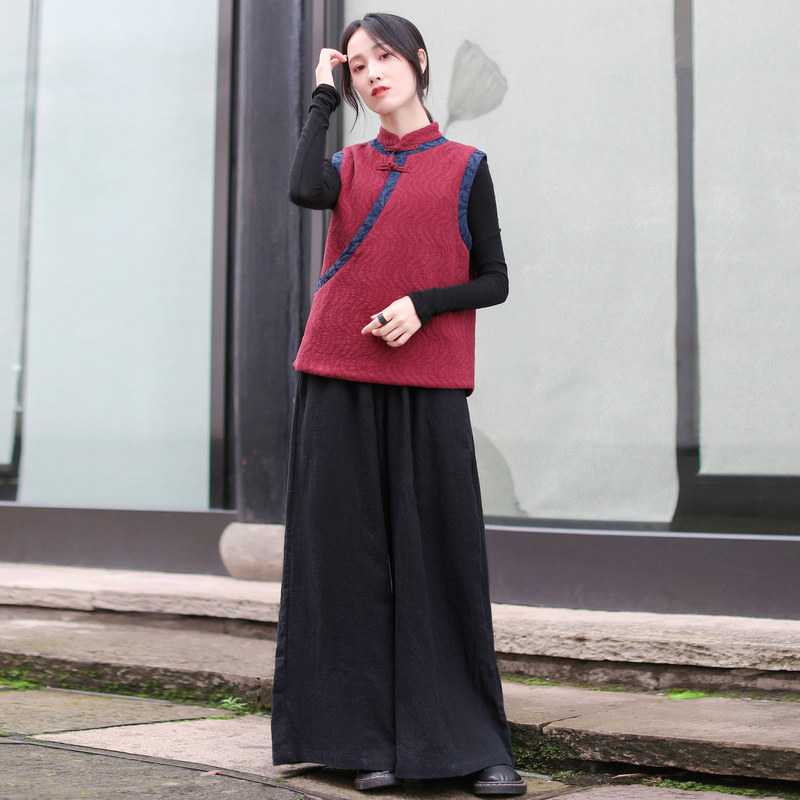 📚 棉麻唐装中国风马甲秋冬装外套女茶艺师服装马夹中式禅意茶服坎肩