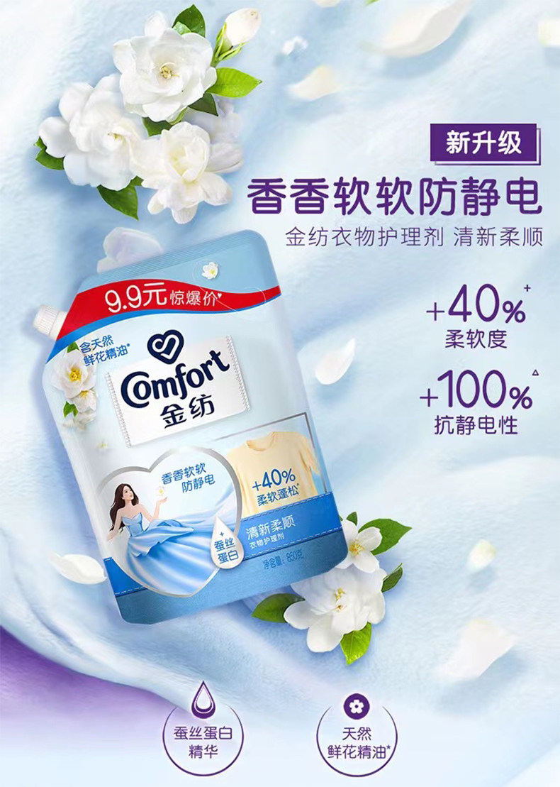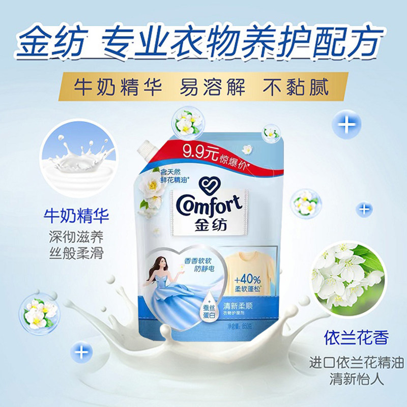 📚 金纺衣物柔顺剂 洗衣护理液清新柔顺非洗衣液除皱防静电 袋装包邮