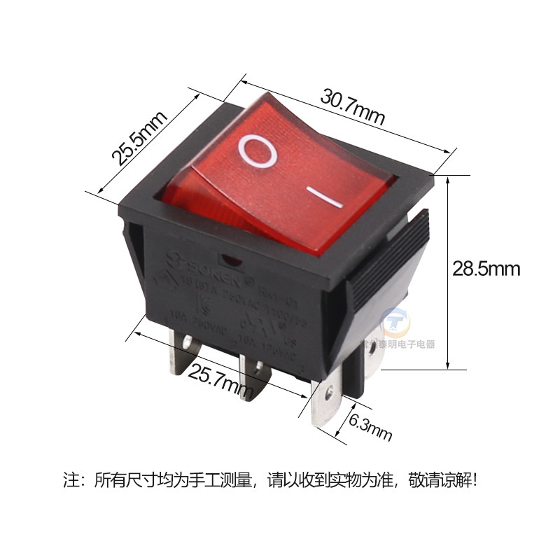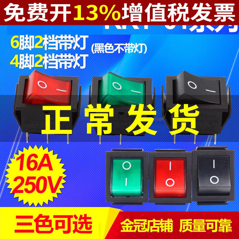 📚 翘板开关电源KCD4船型201N船形RK1红色带灯2路4脚2档16A按钮soken
