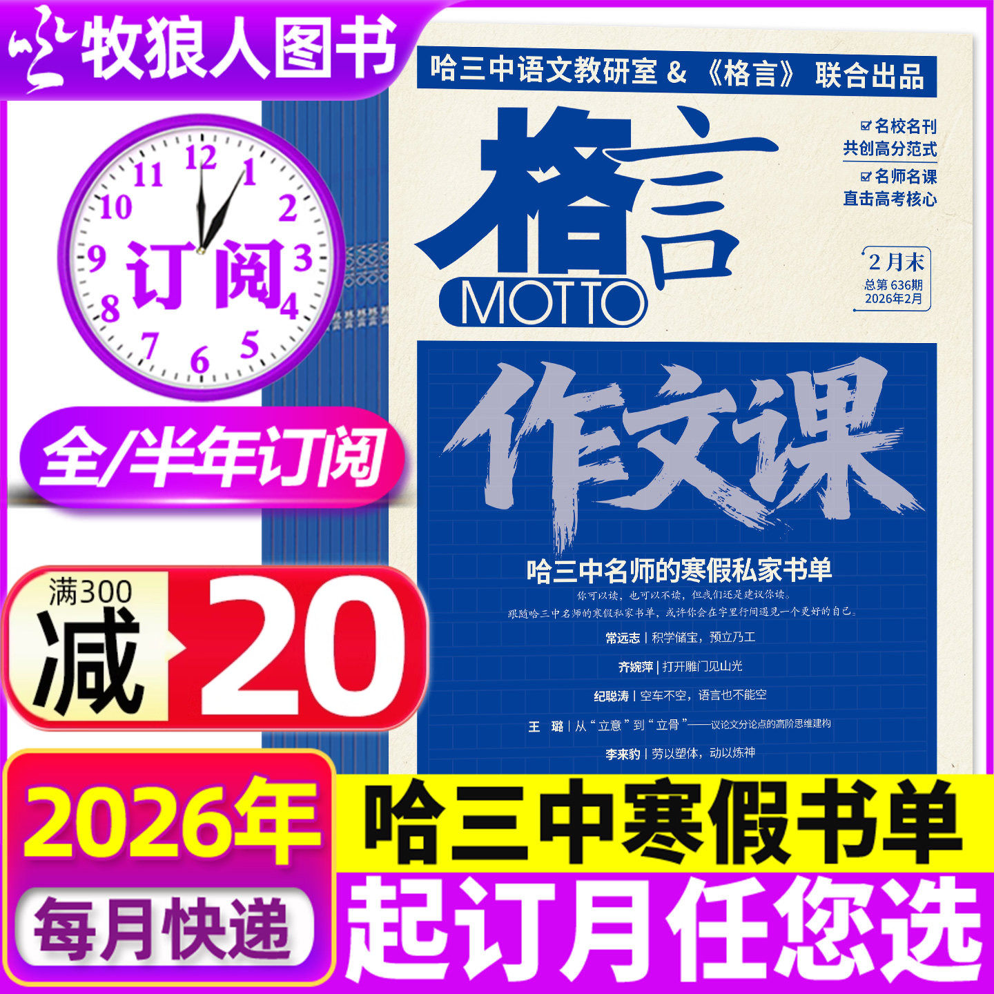 📚 1-2月新【全年/半年订阅】格言作文课杂志2026年1-12月时文选粹作文素材作文与考试实用文摘写作课初中生高中生哈三高考作文非过刊