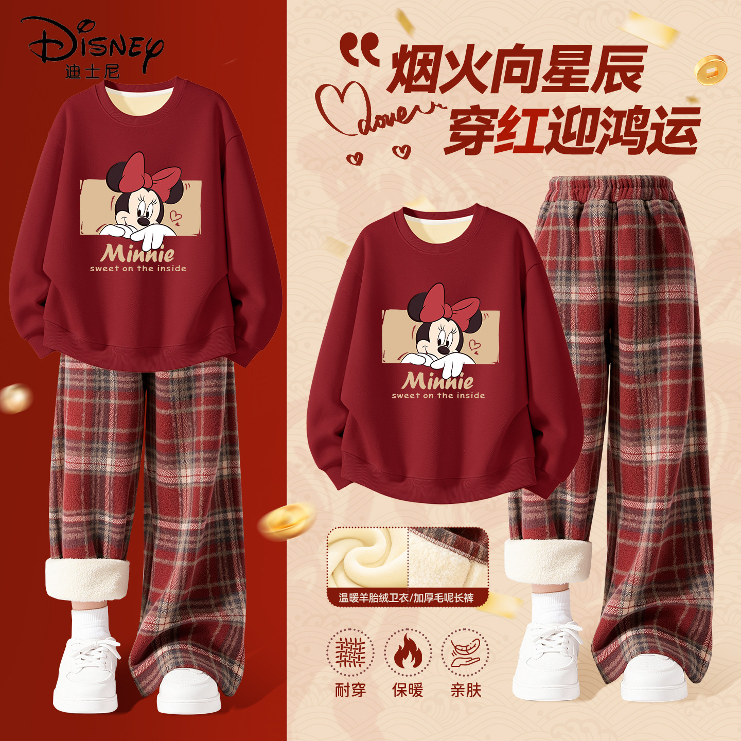 📚 迪士尼女童加绒套装2025新款大童冬季加厚新年衣服儿童冬装休闲装