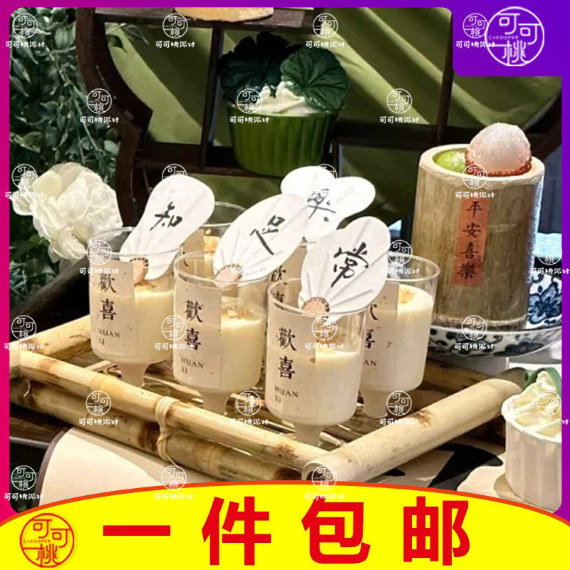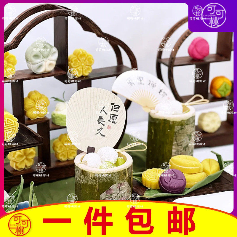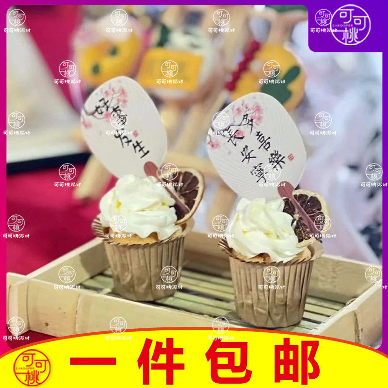 📚 古风新中式甜品台装饰好事发生扇子生日蛋糕插件常安宁多喜乐团扇