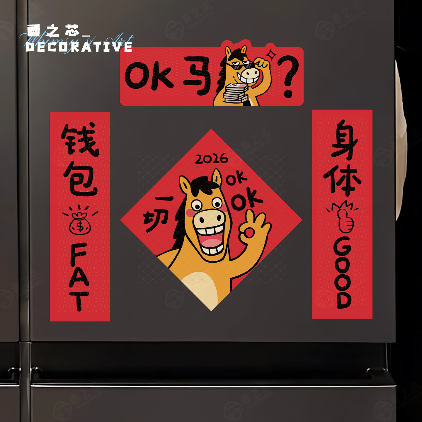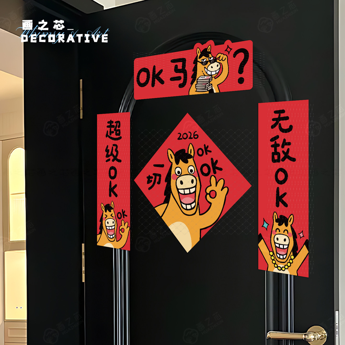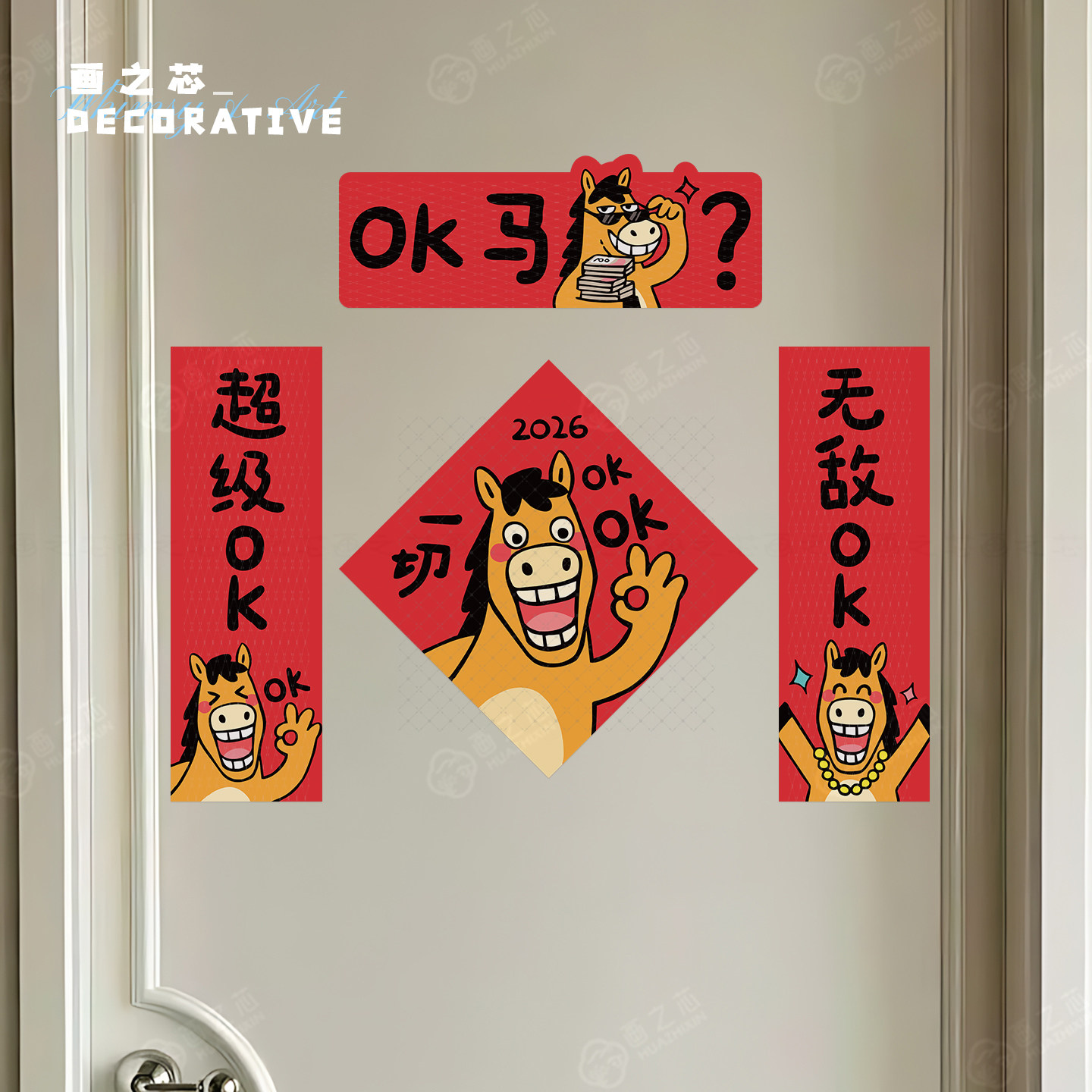 📚 2026马年新年搞笑对联一切OK创意春联春节磁吸背胶入户门联装饰贴