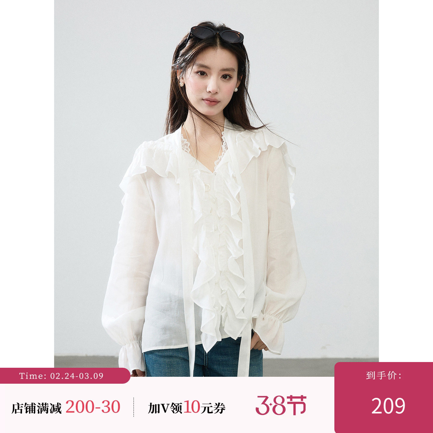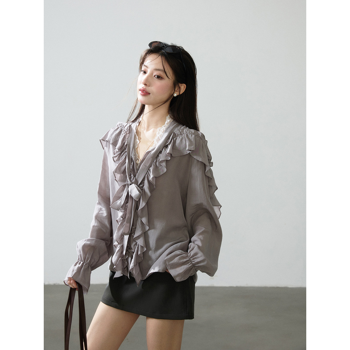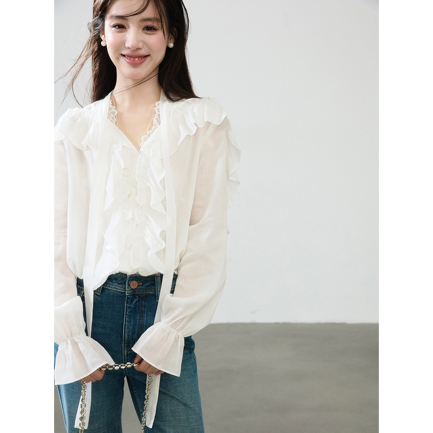 📚 猫酱紫 法式天丝亚麻衬衫女春季罗曼蒂克立体花边温柔风上衣