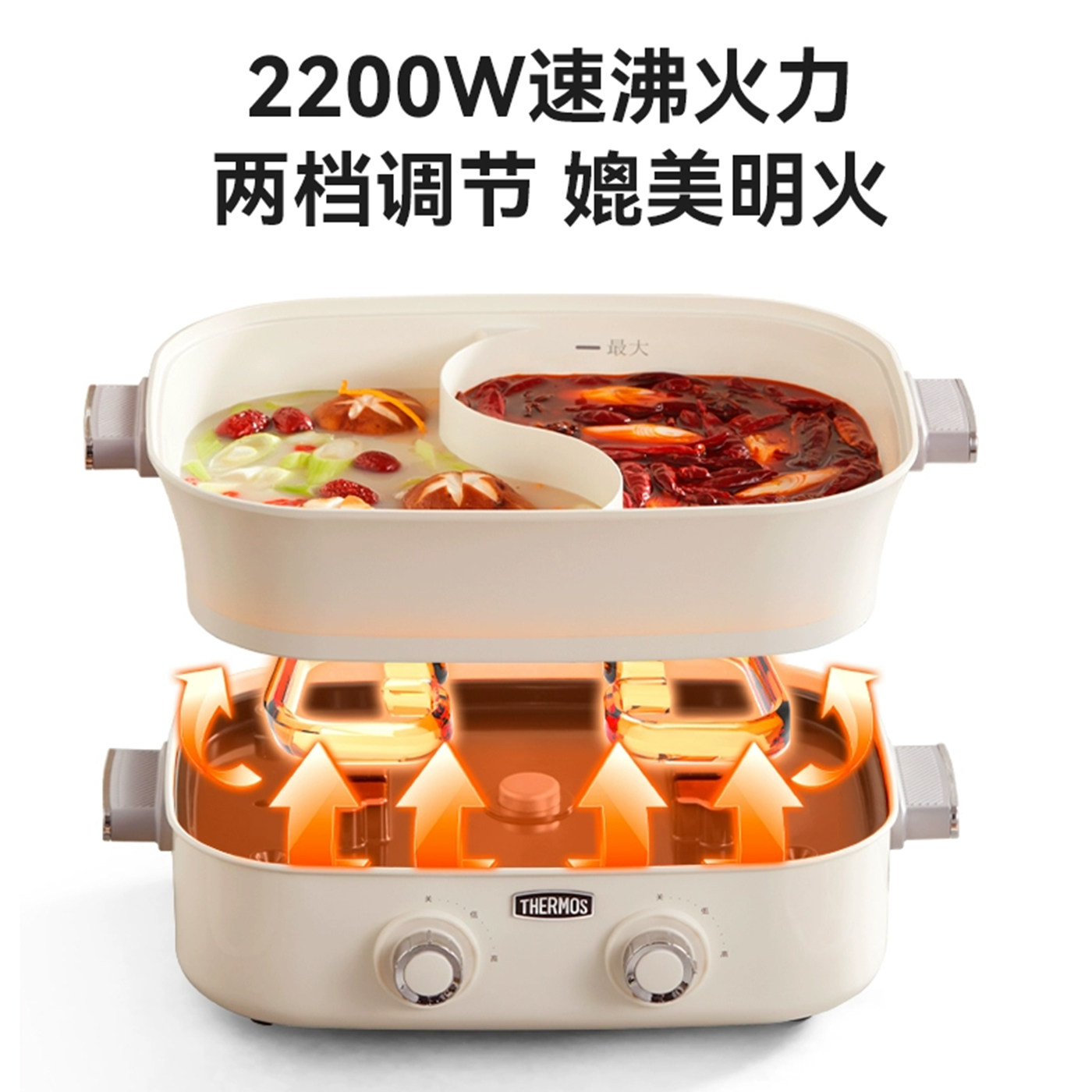 📚 膳魔师鸳鸯电火锅锅家用多功能专用料理锅电热分体式电煮锅大容量