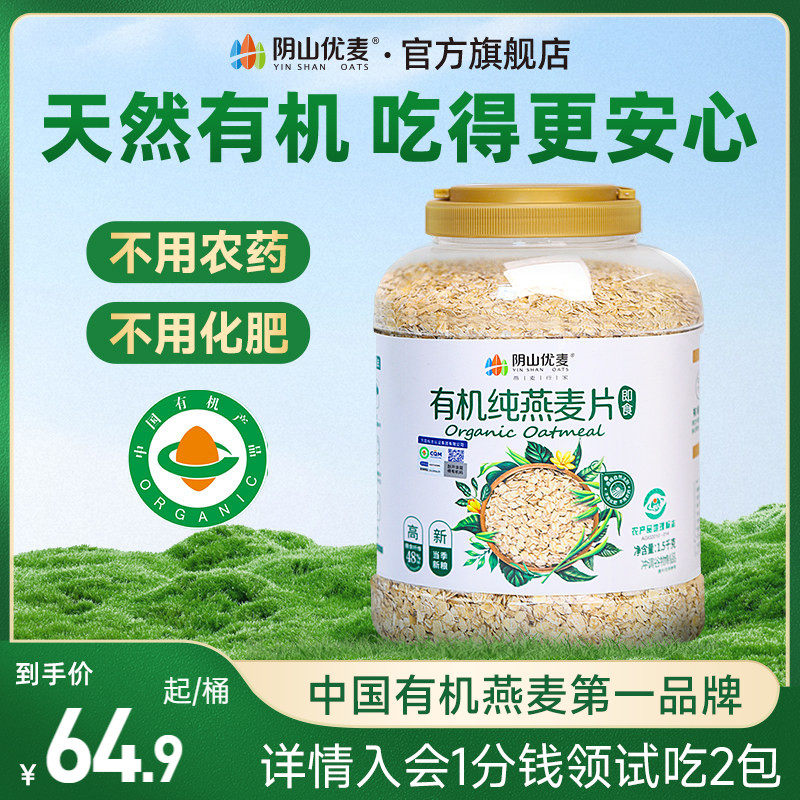 📚 阴山优麦有机纯燕麦片营养原味早餐无添蔗糖懒人代餐即食冲饮燕麦
