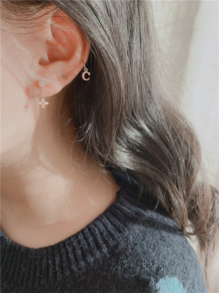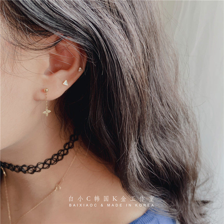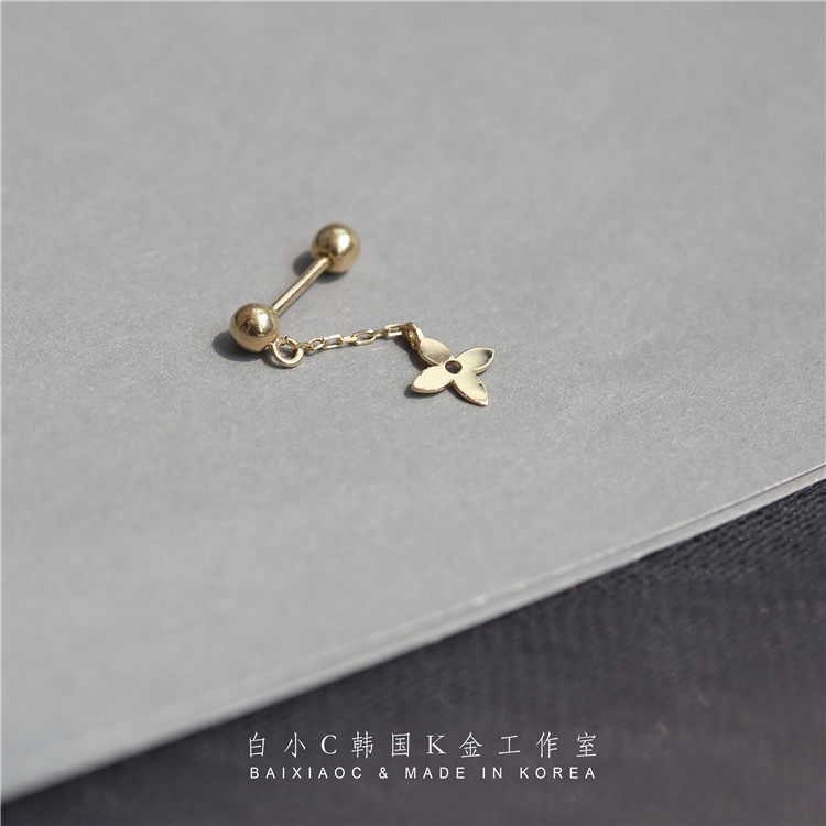 📚 白小C 韩国进口K黄金14K/10K金耳环 小小花朵吊坠耳骨拧螺丝耳钉