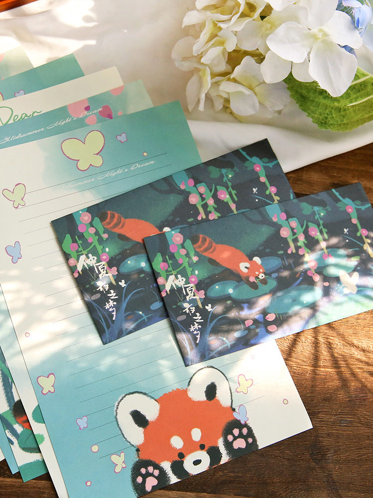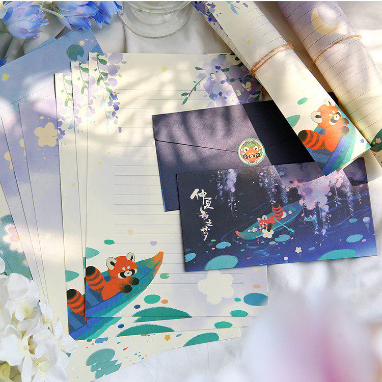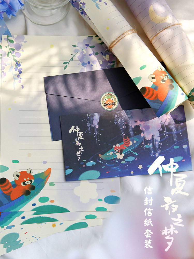 📚 可爱卡通文艺小熊猫高级感信封信纸套装情人节表白情书学生信笺纸