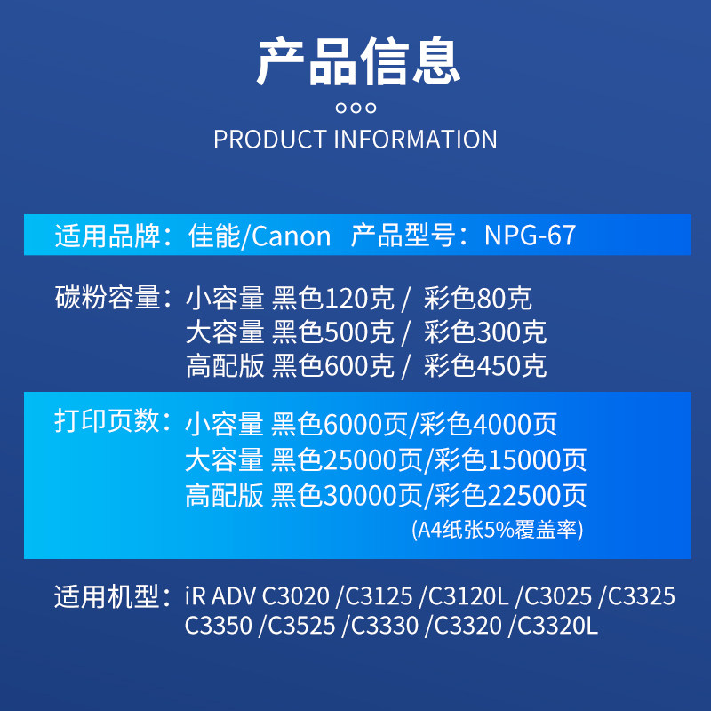 📚 适用佳能NPG-67粉盒IR-ADV C3020 C3125 C3320 C3025 C3226 C3120 3330 3520 3222 3325复印机墨盒3525粉筒